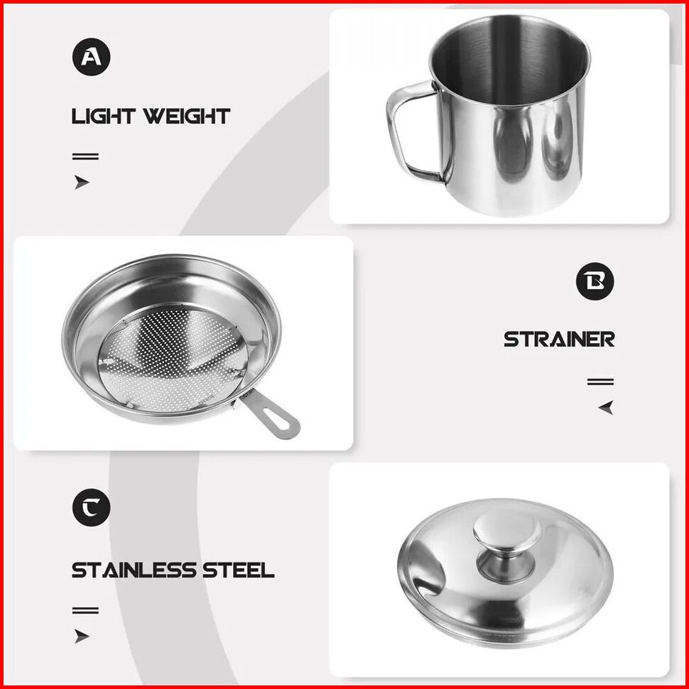 Wadah Saringan Minyak Oil Pot Stainless Gelas Saringan Minyak Oil Filter Pot
