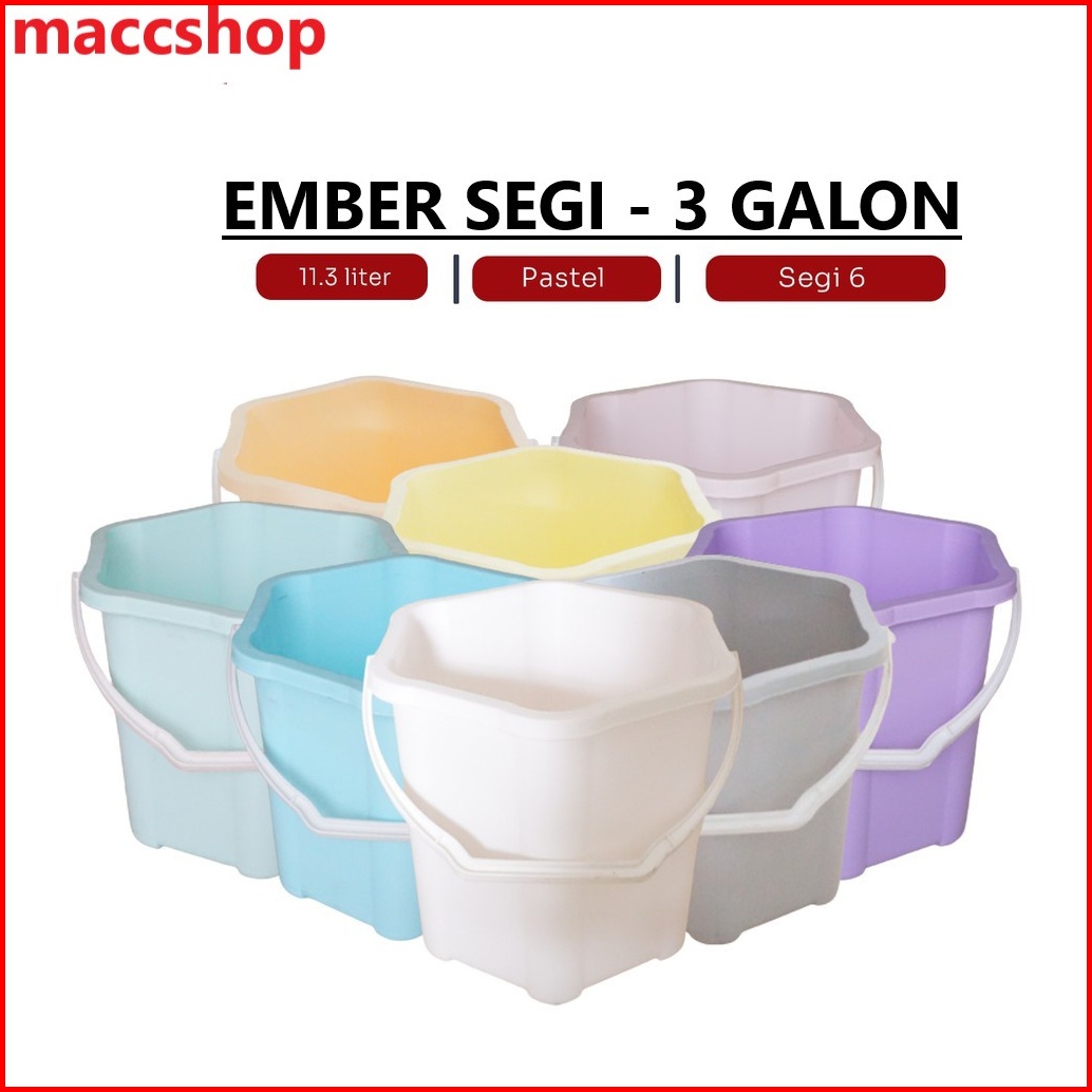 Ember Plastik Gagang Segi 6 Pastel - 3 Galon - 10 Liter