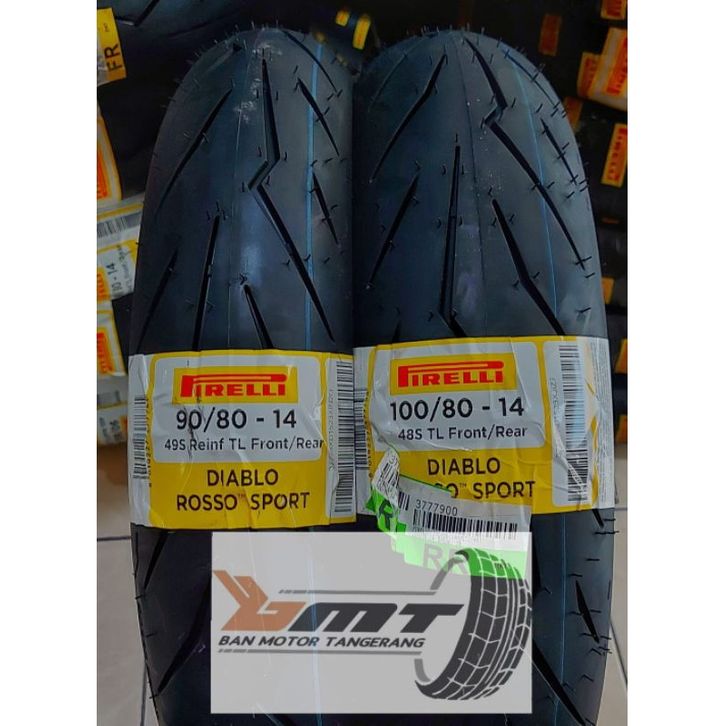 Paket Ban pirelli diablo rosso sport uk 90/80-14 & 100/80-14 TUBELESS depan belakang