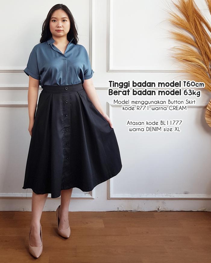 Rok polos wanita lebar midi plain skirt R771 771 Kancing ada Karet Samping