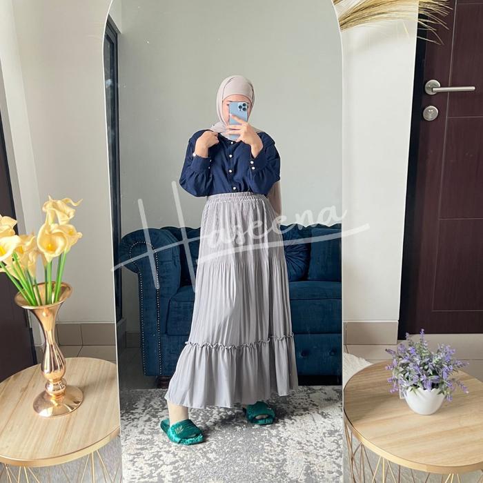Haseena Rok Plisket Susun Maiza Skirt Wanita Ruffle Anti Nerawang Bawahan Wanita Muslim Polos Panjang
