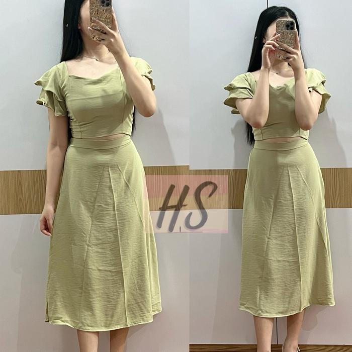 STELAN ROK ANGEL set crop top + rok angel Setelan Wanita Casual