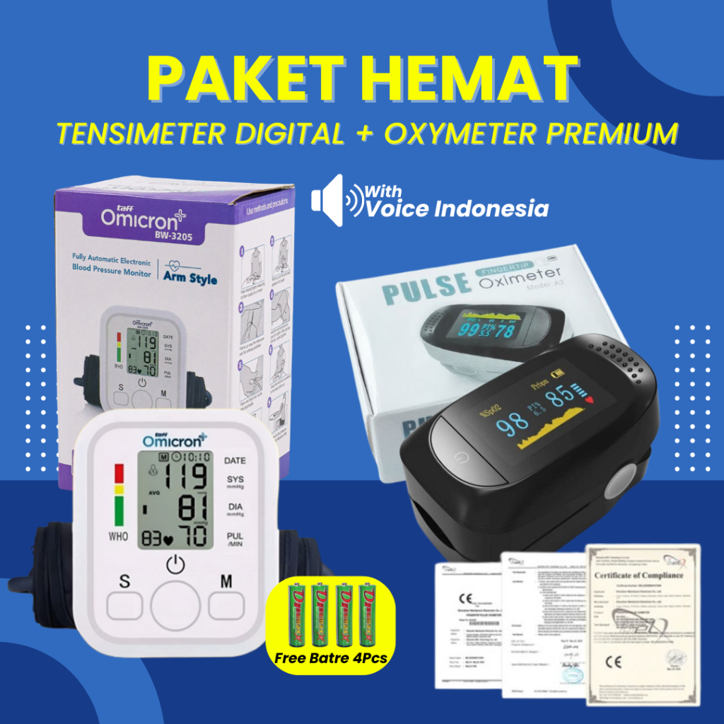Paket Hemat Tensimeter Digital & Oxymeter Alat Tensi Fingertip Pulse Alat Ukur Kadar Oksigen Detak Jantung Alat Cek Tens