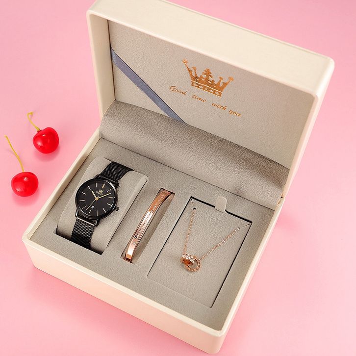 Jam Tangan Wanita Anti Air Set Kalung Gelang Anti Karat Original Analog Stainless Steel