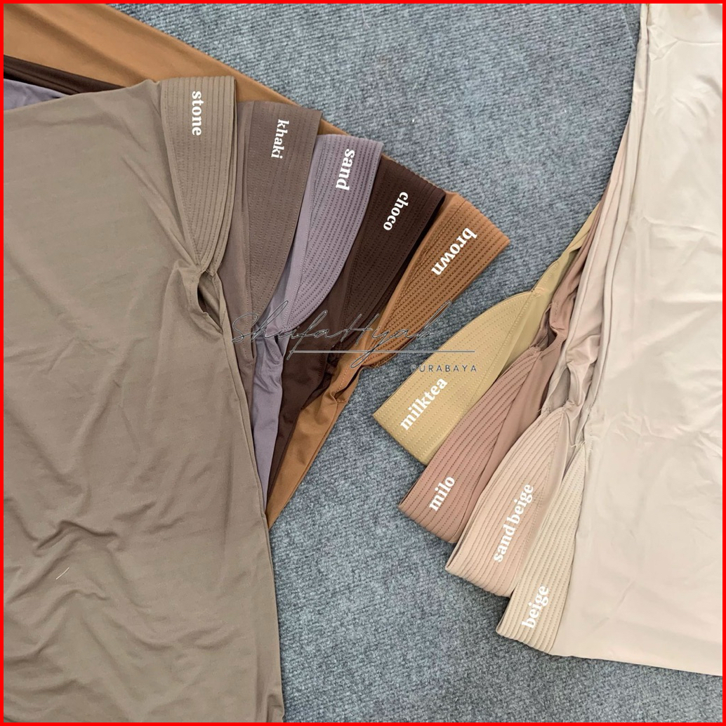 Black, Dark grey, White, Grey, Rosepink, Mustrad, Darkgreen, Maroon, Milktea, Milo, Stone, Mauve, Sepia, Purple, Bluedenim, Matcha, Beige, Scrunchie 2pcs, Salmon, Ginger, Zaitun, Aqua, Avocado, BrokenWhite, Khaki, Sand, Choco, Brown, Sandbeige, Emerald, Teracota, Lavender