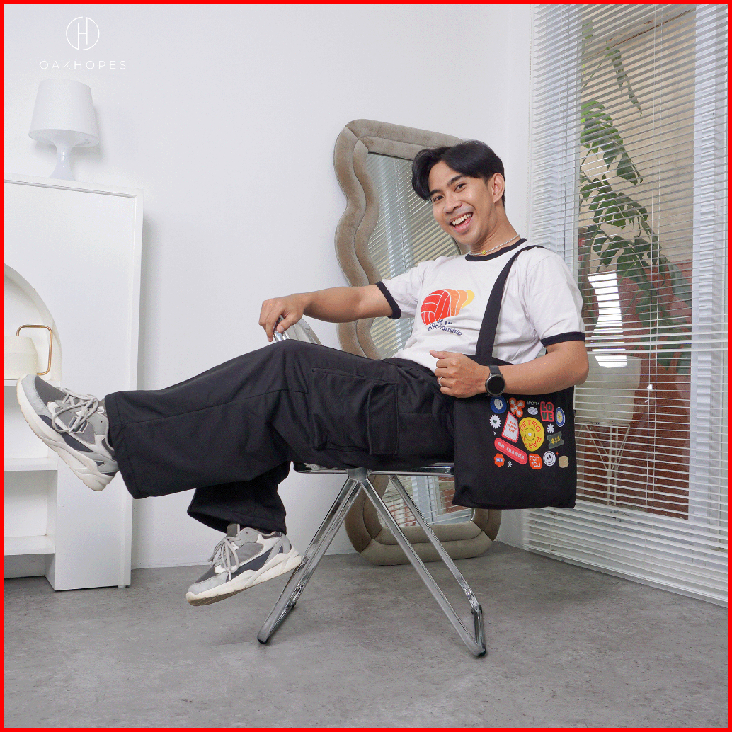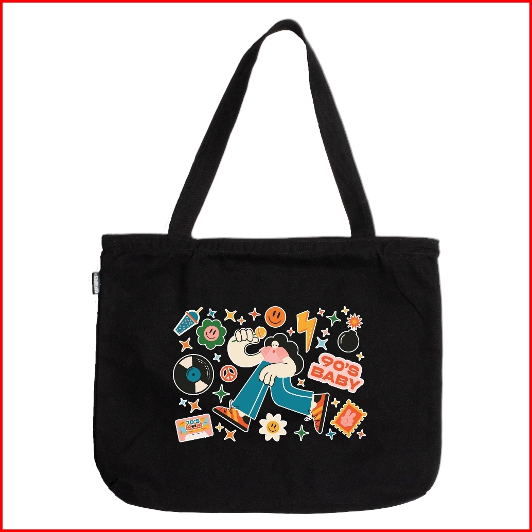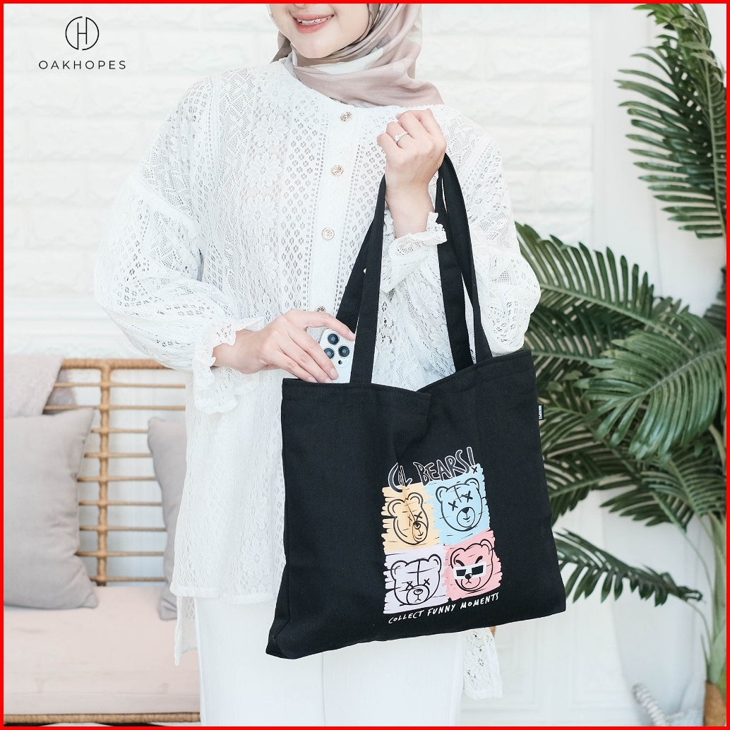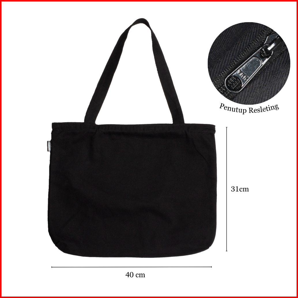 Oakhopes - Tas Tote Bag Kanvas Resleting - Clair Totebag Hitam Pria Wanita