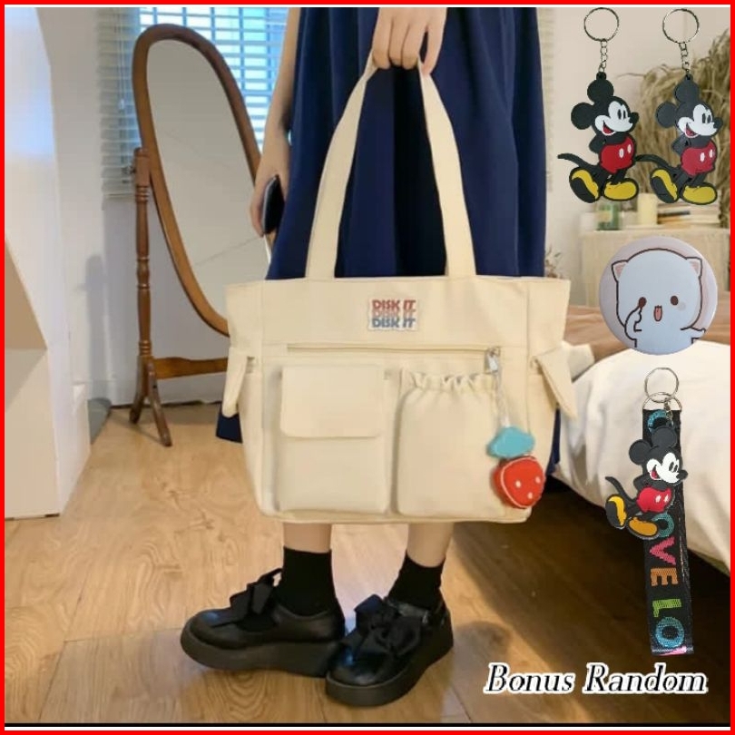 Tas Totebag Wanita Korean Style Bahan Kanvas Tas Selempang Slingbag Tote Bag Kuliah Kerja Terbaru