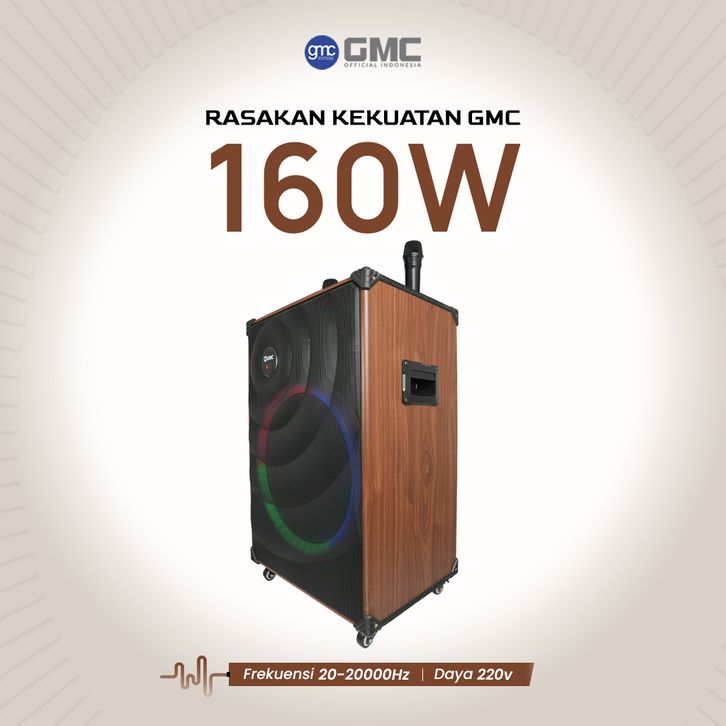 GMC Speaker 883J – Speaker Karaoke Bluetooth 18” – 160W, 2 Mic Wireless, Lampu LED, USB, AUX, TF