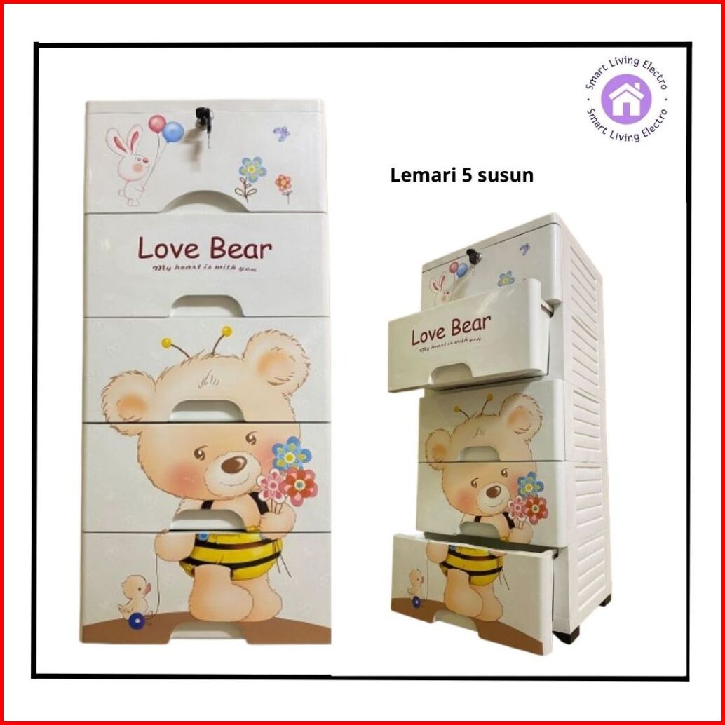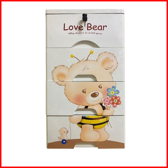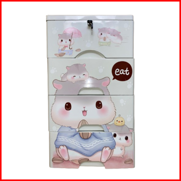 Lemari Pakaian Anak 4 Tingkat 5 Tingkat Lemari Plastik Karakter Penyimpanan Pakaian Baby