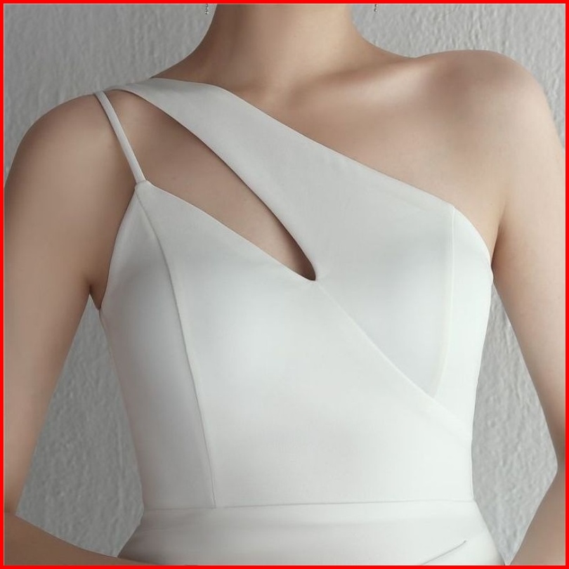 Herfoux Ivory One Shoulder Long Dress Pesta Bridesmaids