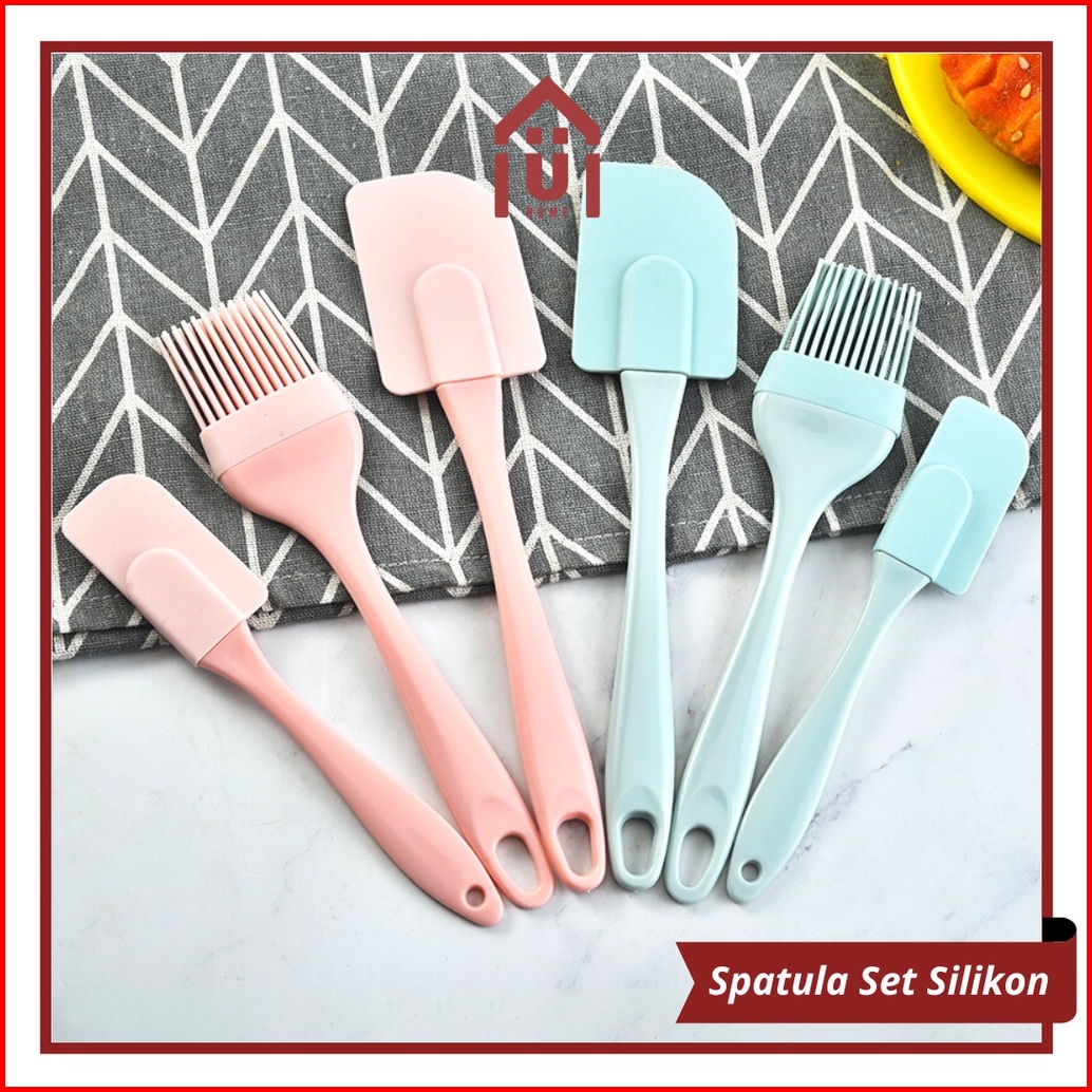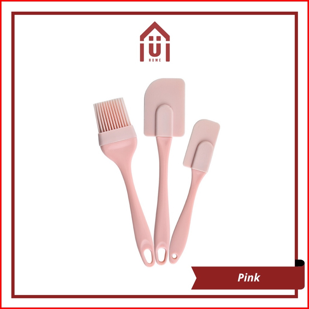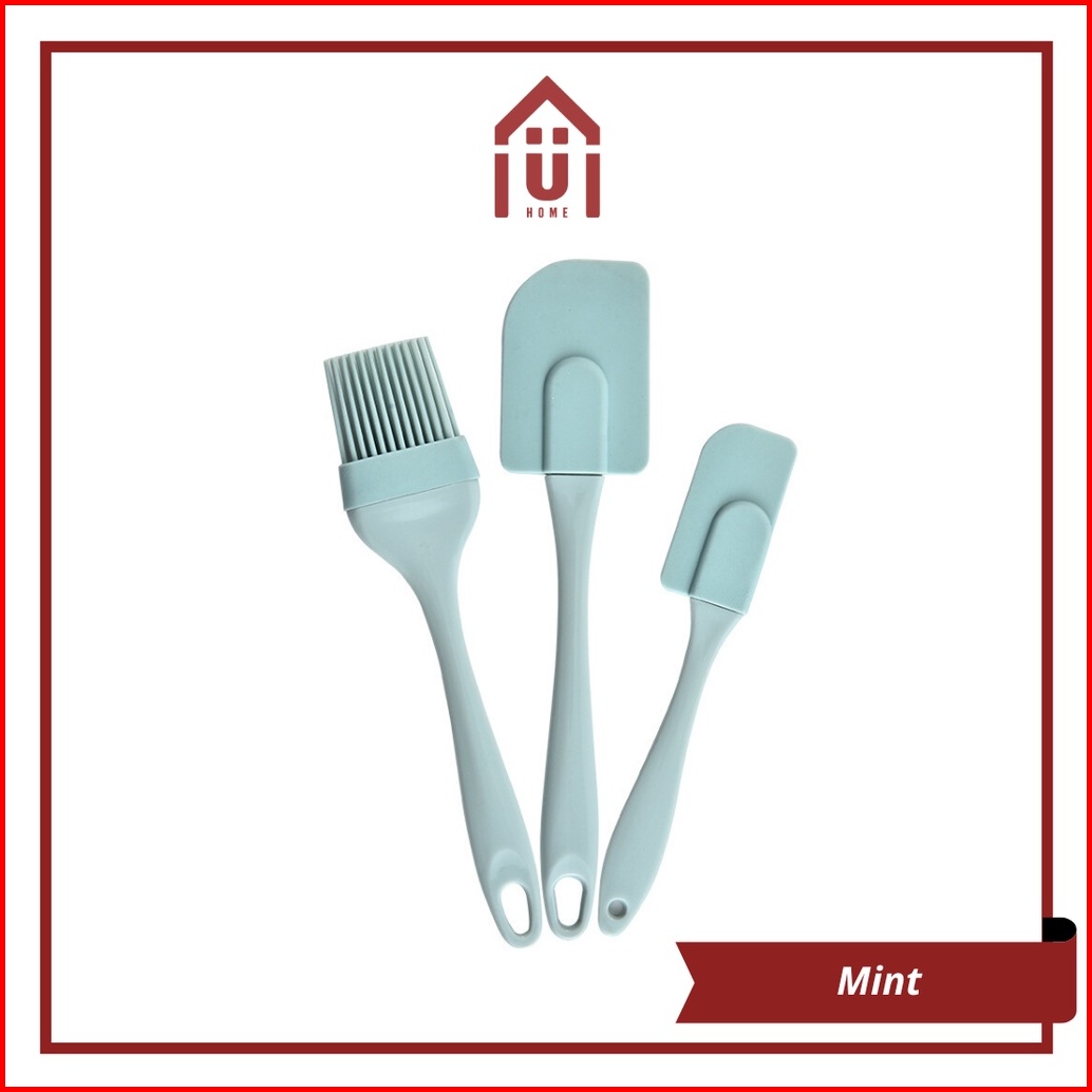 Uniso - 3 Pcs Spatula Silicone Set Scraper Kuas Kue Sutil Sodet Silikon Anti Lengket Serbaguna