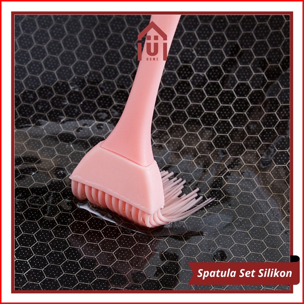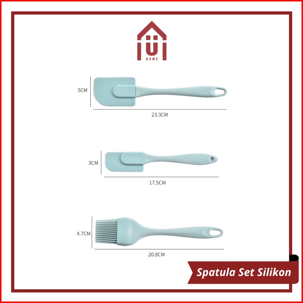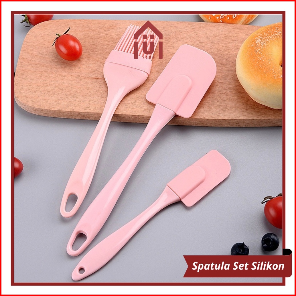 Uniso - 3 Pcs Spatula Silicone Set Scraper Kuas Kue Sutil Sodet Silikon Anti Lengket Serbaguna