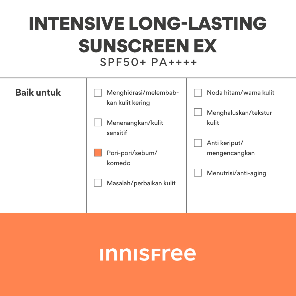 Innisfree Intensive Long Lasting Sunscreen SPF50+ PA++++ 60ml - Sunscreen untuk Kulit Berminyak dan Kombinasi
