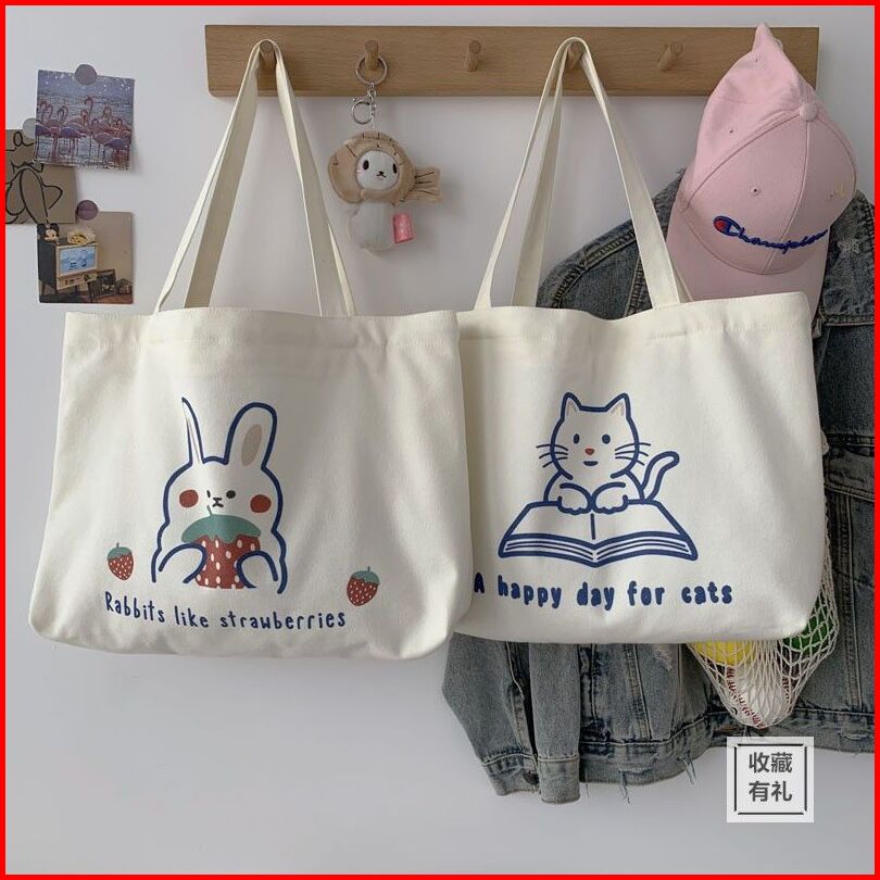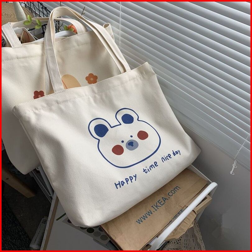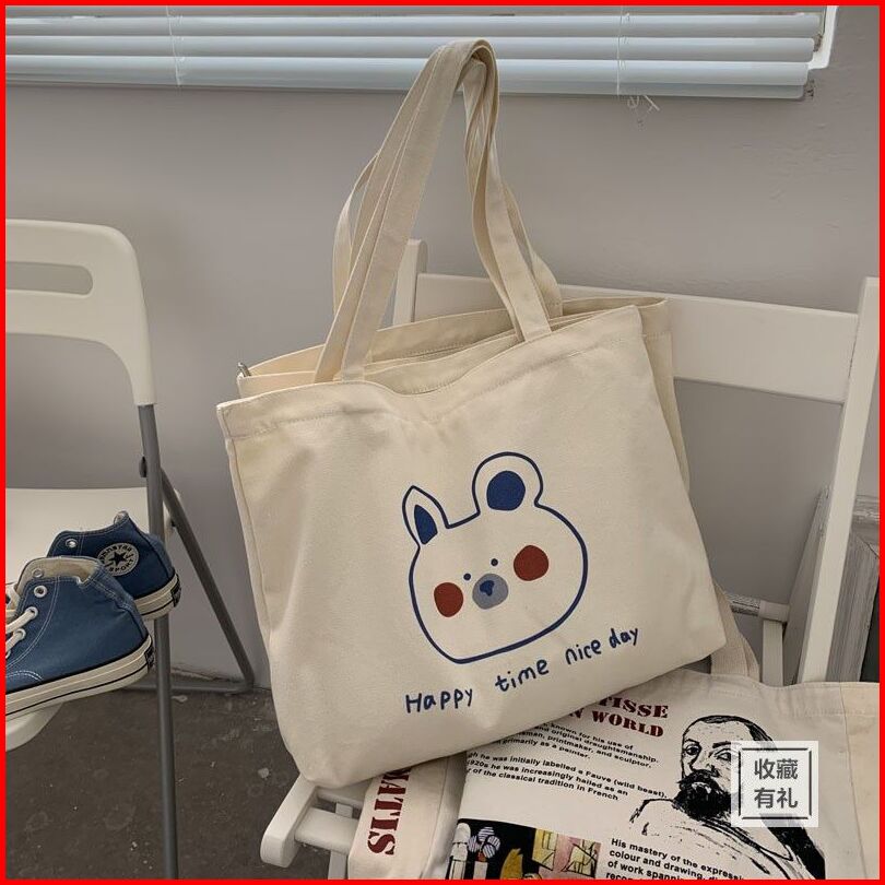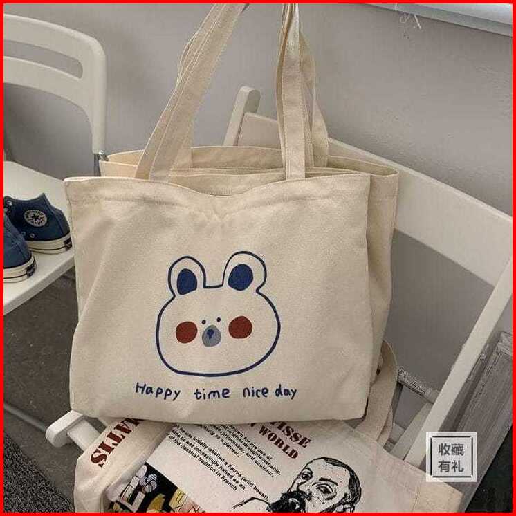Totebag Happy Time Wanita Uk. 35x30 Pakai Resleting Bisa Custom