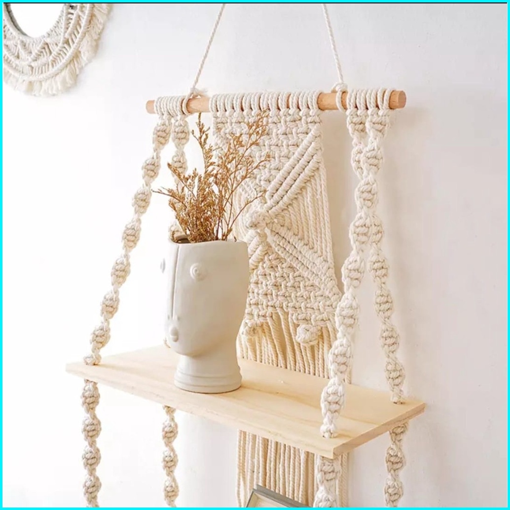 Premium Macrame Macrame Ambalan Rak Dinding Aesthetic Rak Dinding Viral Rak Dinding Kekinian Hiasan Dinding Tali Katun