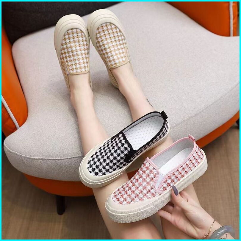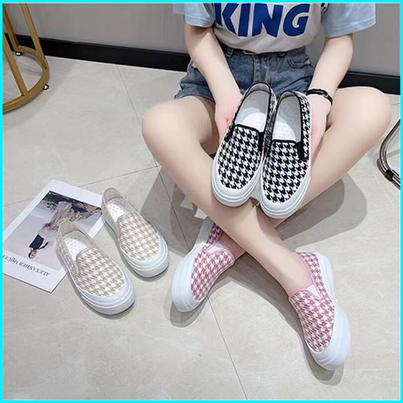 Sepatu Kasual S-07 Sepatu Slip On Wanita Import Motif Zigzag Sepatu Sneakers Trendy Wanita