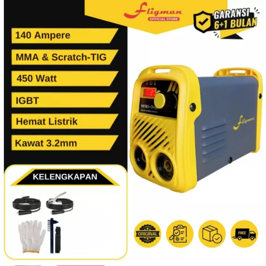 [Fligman] Mesin Las Mini Inverter 450W 140A IGBT LCD- dilengkapi dengan aksesori pengelasan lengkap