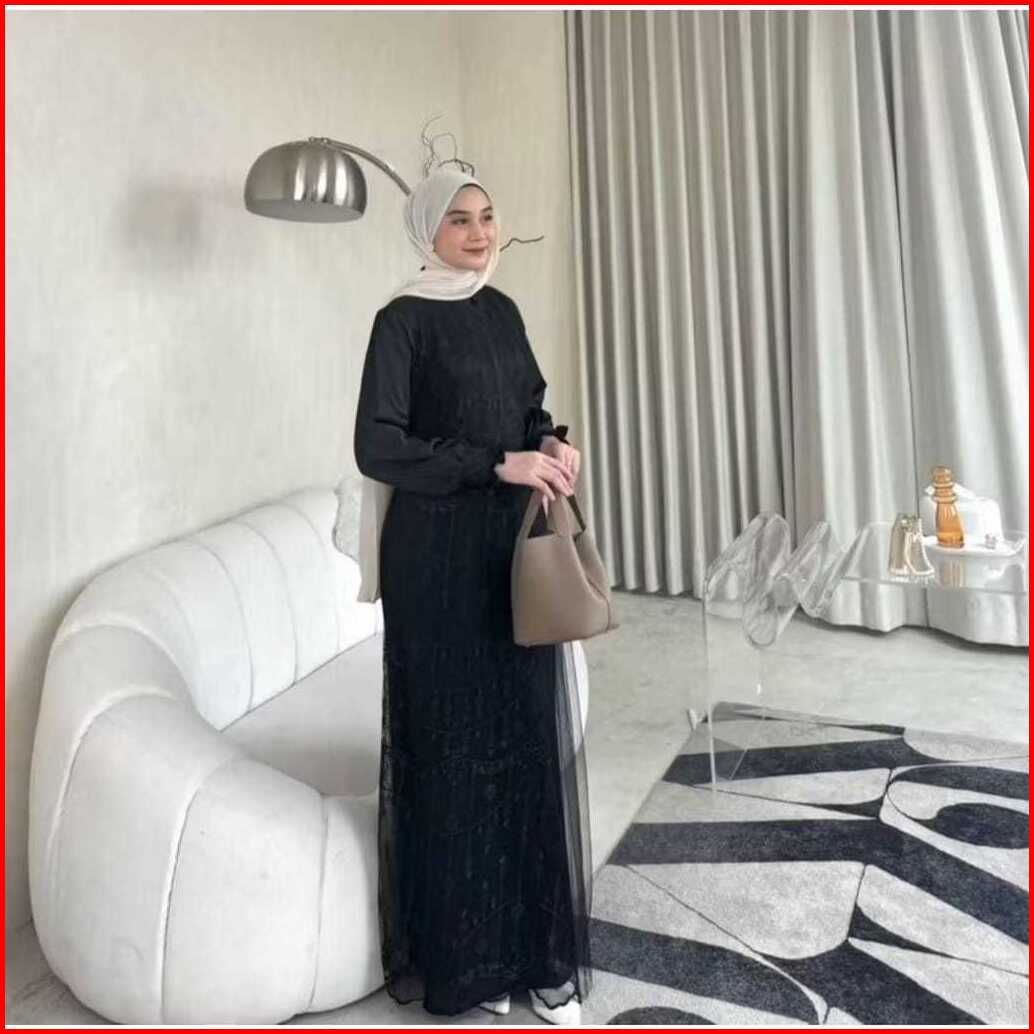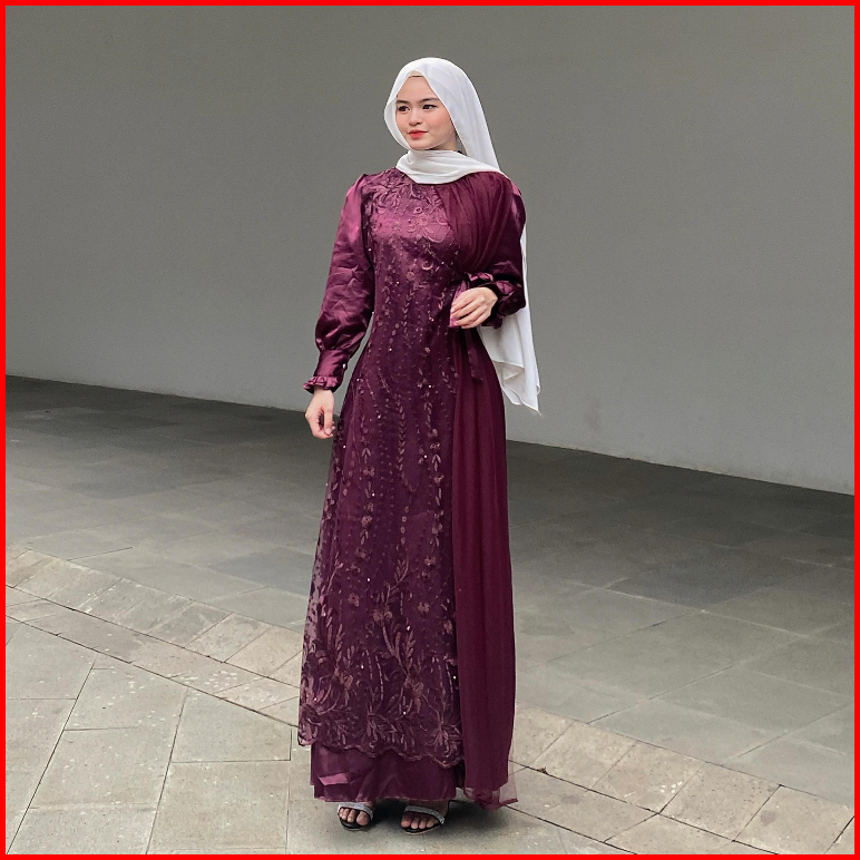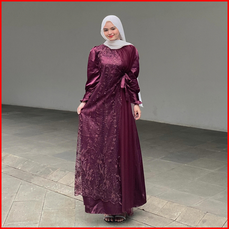 Gamis Kondangan Remaja Kinar Gamis Brokat Burgundy Premium Maxi Dress Pesta Exclusive Kekinian Laris
