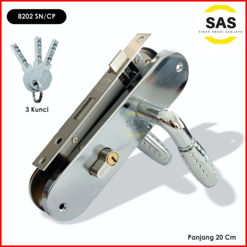 Sas Gagang Kunci Pintu Handle Pintu Komplit Ukuran Tanggung Tanggung 20 Cm Bulat Kotak Potta