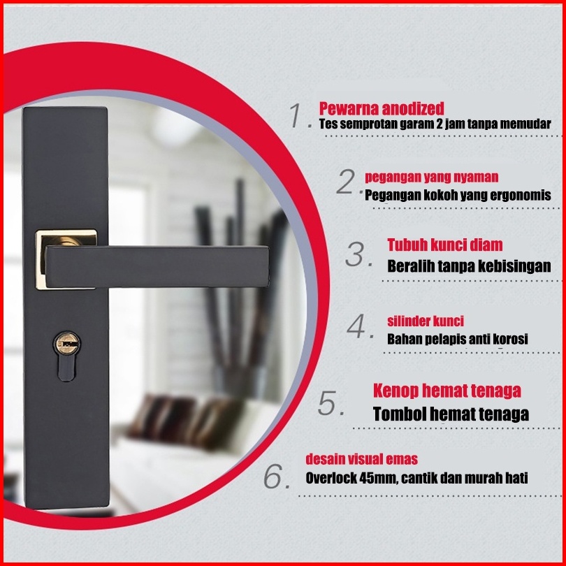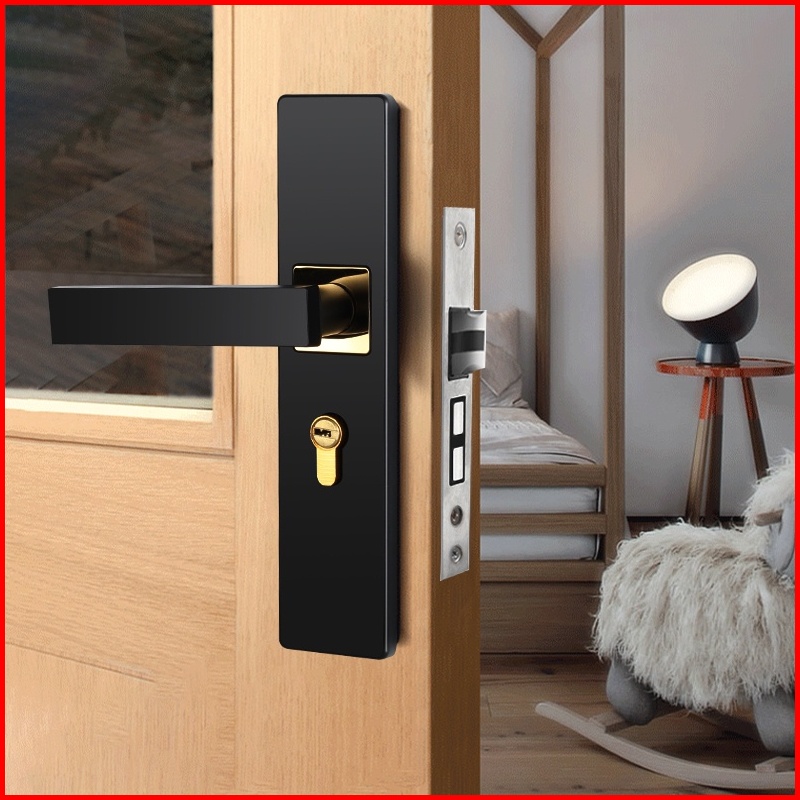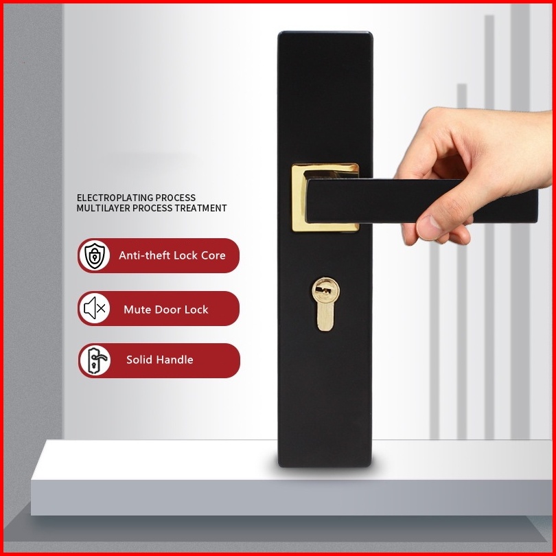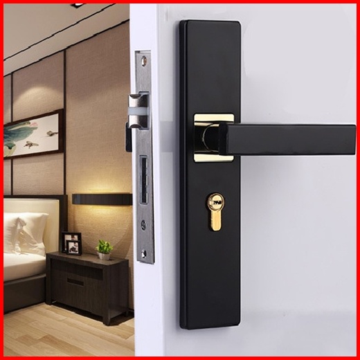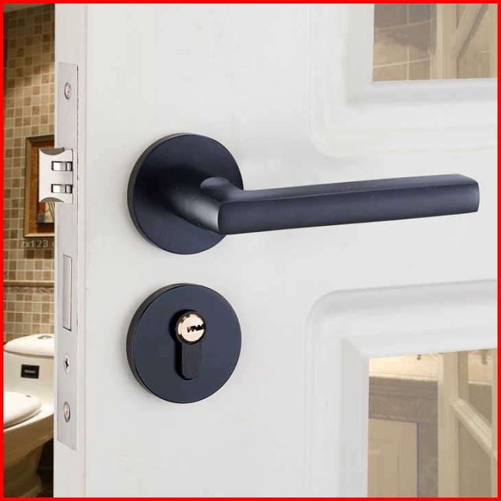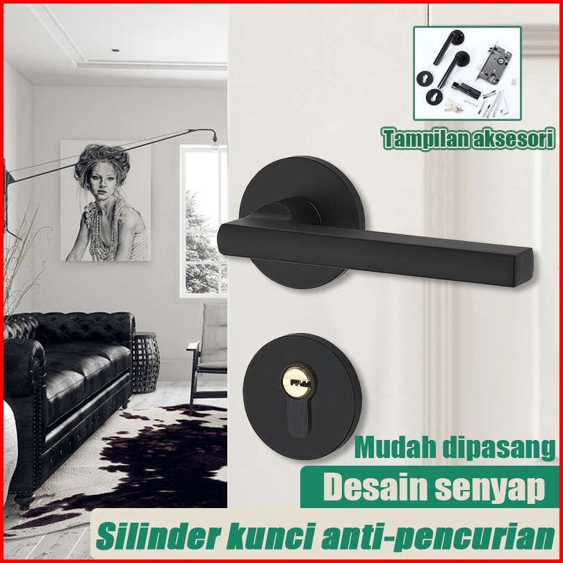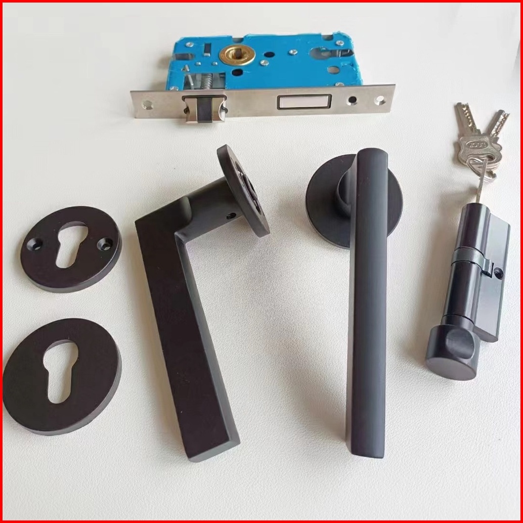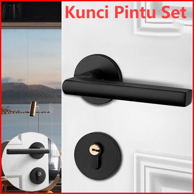Gagang Pintu Gaya Eropa Hitam Full Set Kunci Pintu Premium Door Lock Kunci Pintu Set Alumunium Komplit Lockset Gagang Pi