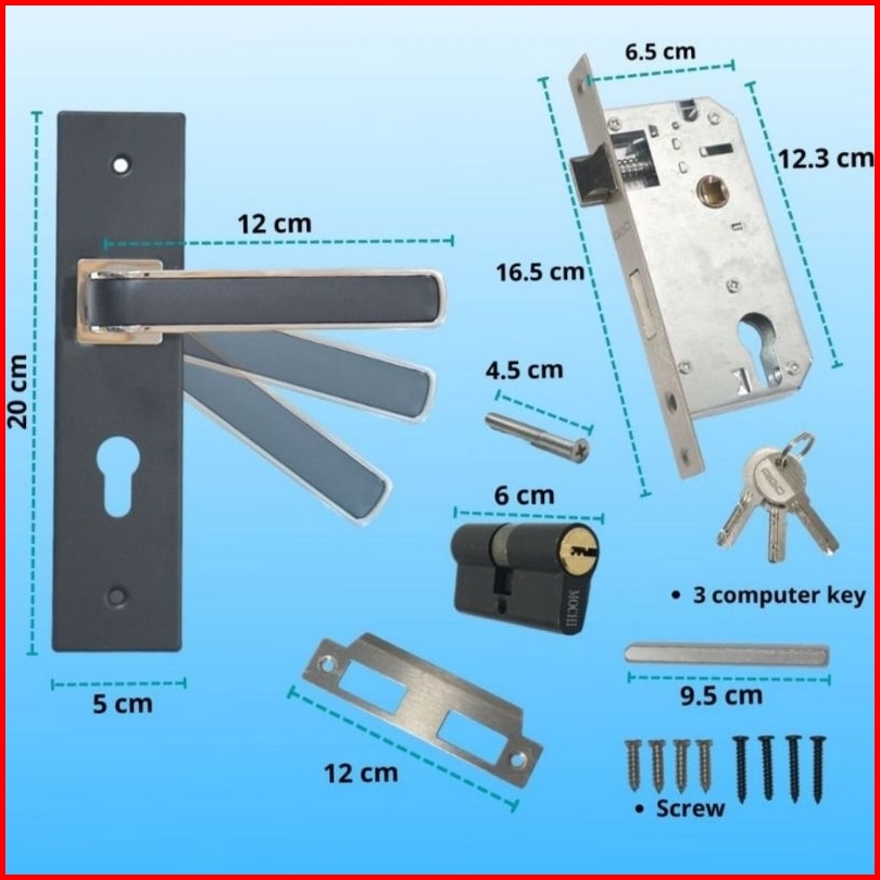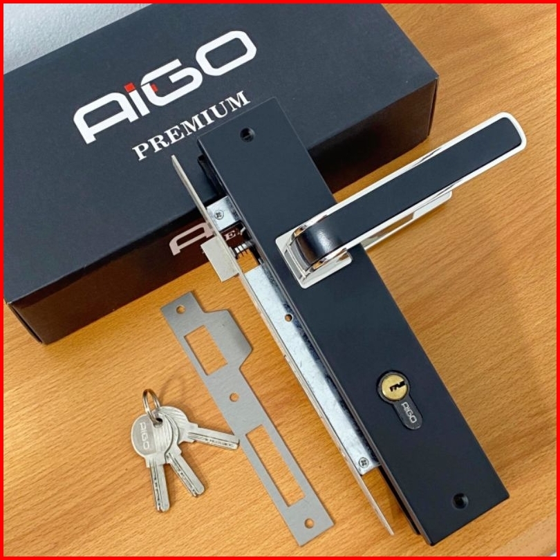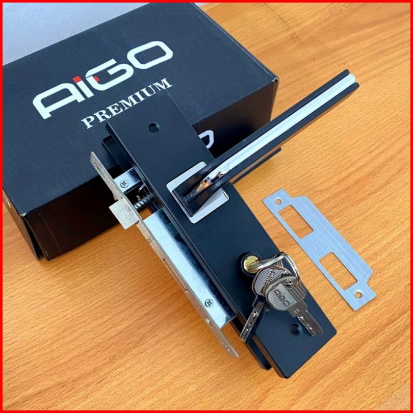 Slot Kunci Handle Handel Pintu Rumah Set Komplit Medium Tanggung Hitam Minimalis 20 Cm Aigo Premium