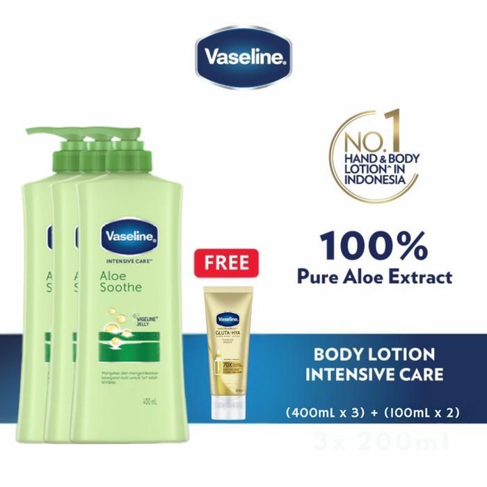 Vaseline Lotion Intensive Care Aloe Soothe 400ml isi 3 FREE 2 Vaseline Gluta Hyaluron Flawless Bright 100ml