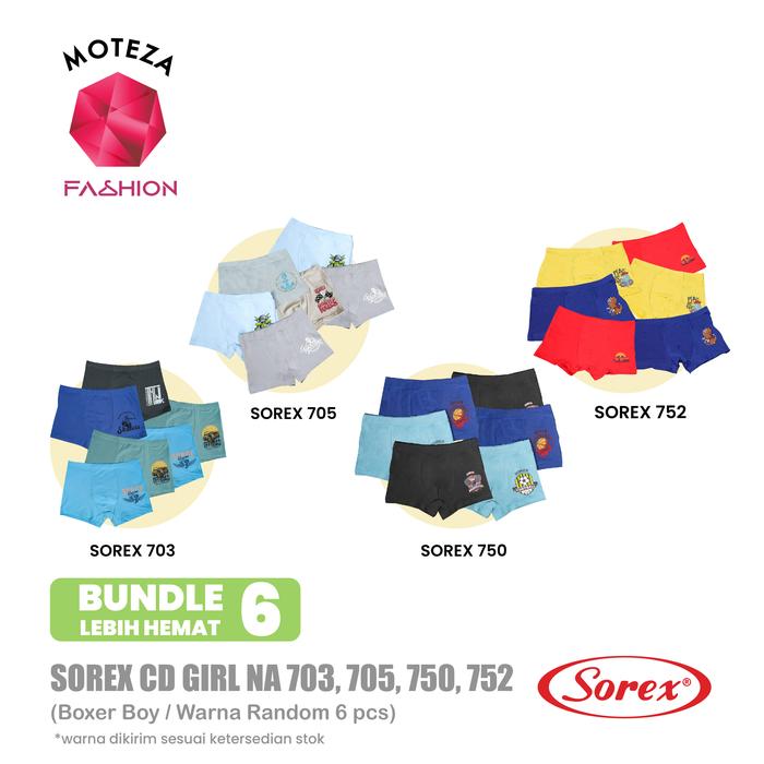 ISI 6 PCS SOREX ANAK 703 ; 752 ; 705 ; 750 - Sorex Celana Dalam Boxer Anak Laki Boy Motif Sd Fashion