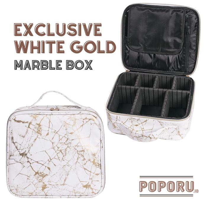 POPORU EXCLUSIVE WHITE GOLD MARBLE BOX - cosmetics bag organizer for make up - tas tempat kosmetik pouch koper kecil