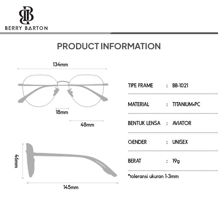Kacamata Minus Frame Aviator Titanium Pria/Wanita Berrybarton 1021