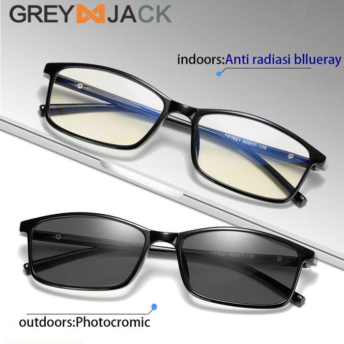GREY JACK kacamata anti radiasi blueray+photocromic 2IN1 TR90 Model kotak Fashion pria dan wanita 2821