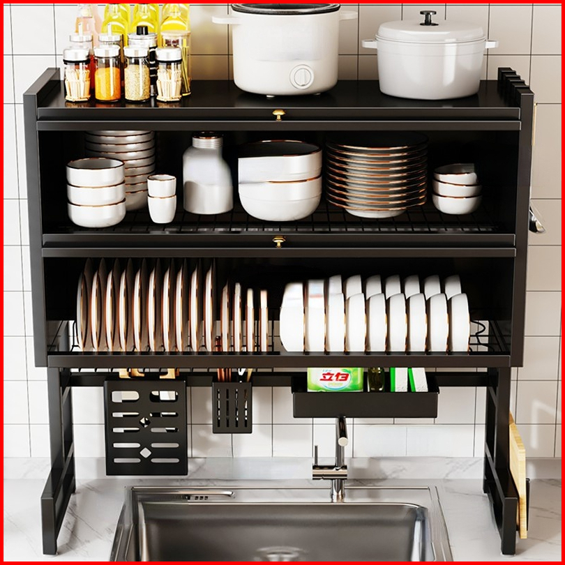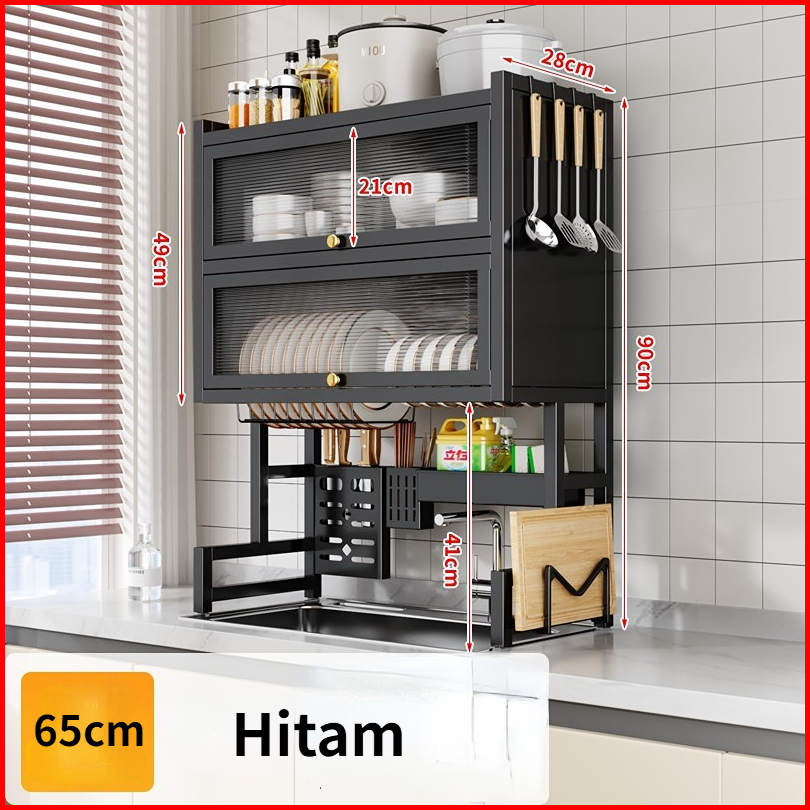 Rak Piring Wastafel 2 Lapis Anti Debu Dengan Penutup Tatakan Anti Bocor F62