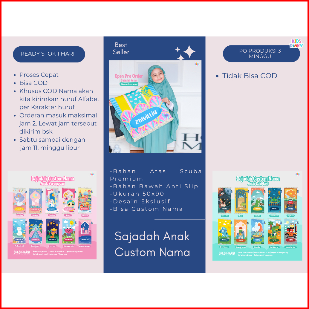Kids Diary Plus - Sajadah Anak Custom Nama Nuha Anti Slip Scuba