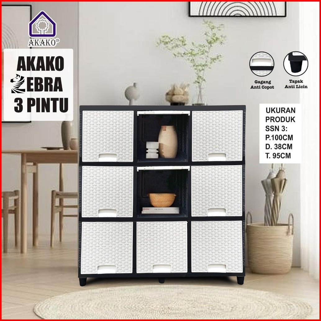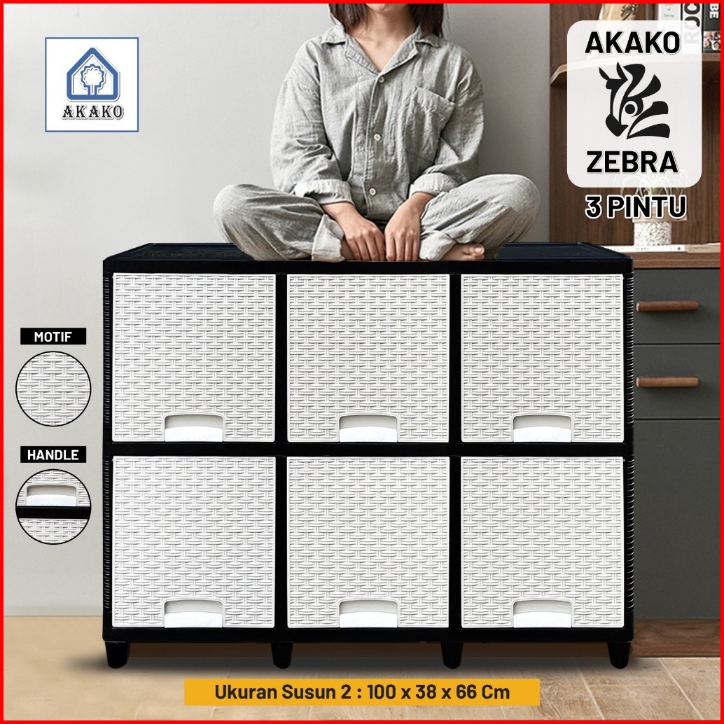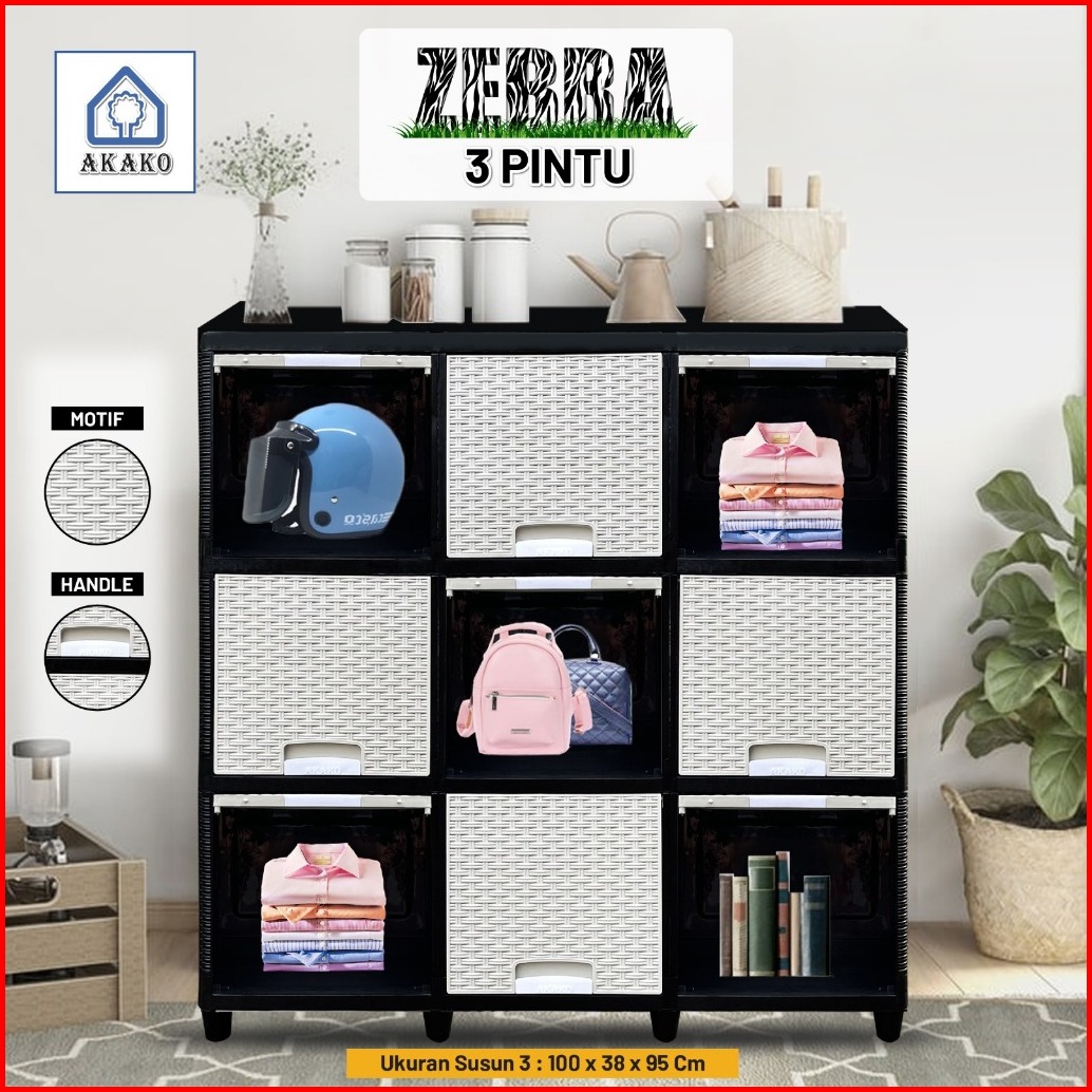 Lemari Pakaian Plastik Akako Zebra 3 Pintu 2 3 Susun Laci 6 9 Pintu Putih Rotan Murah Kuat Kokoh