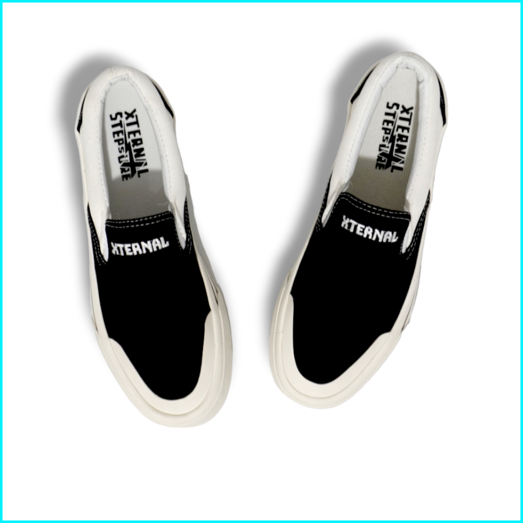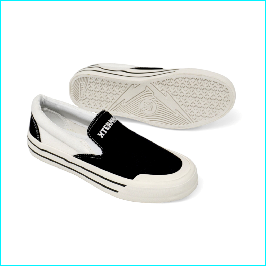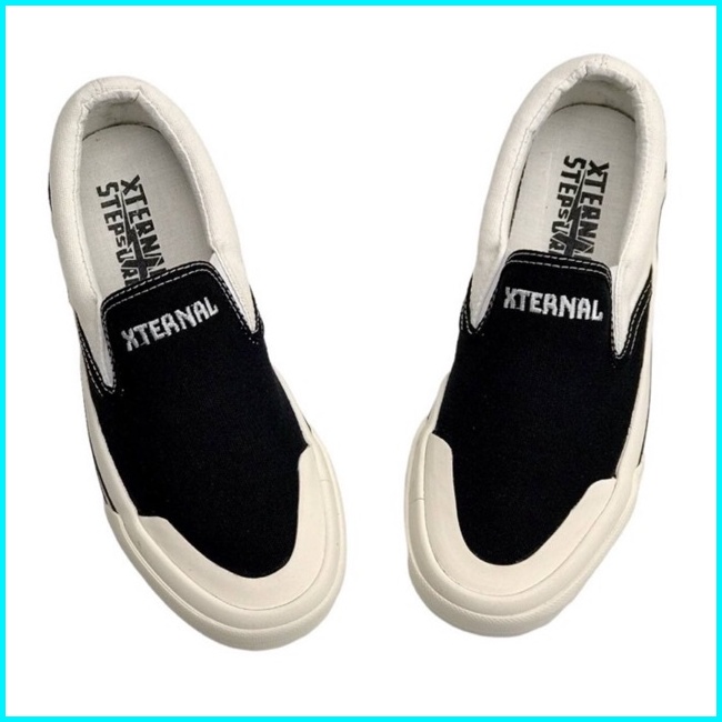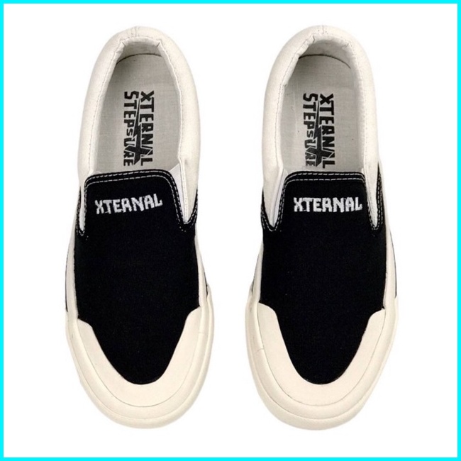 Xternalstepsure - Sepatu Slipon Unisex Middle White Bordir Hf Casual Pria Wanita