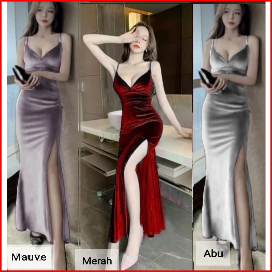 M-l Maxi Dress Selina Bludru Velvet Slit