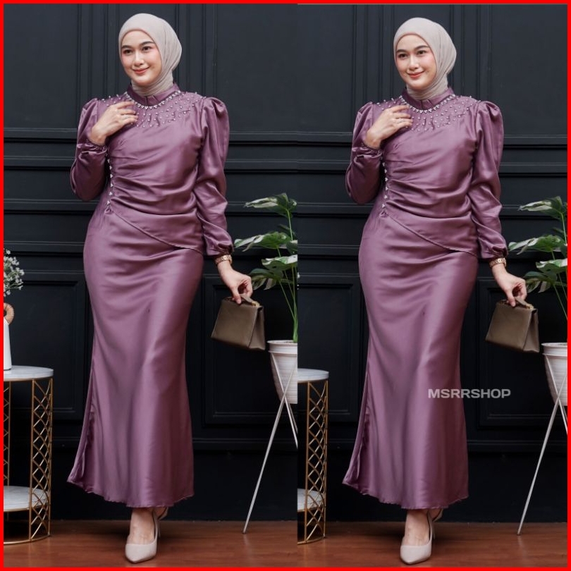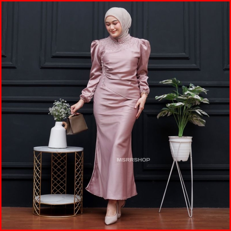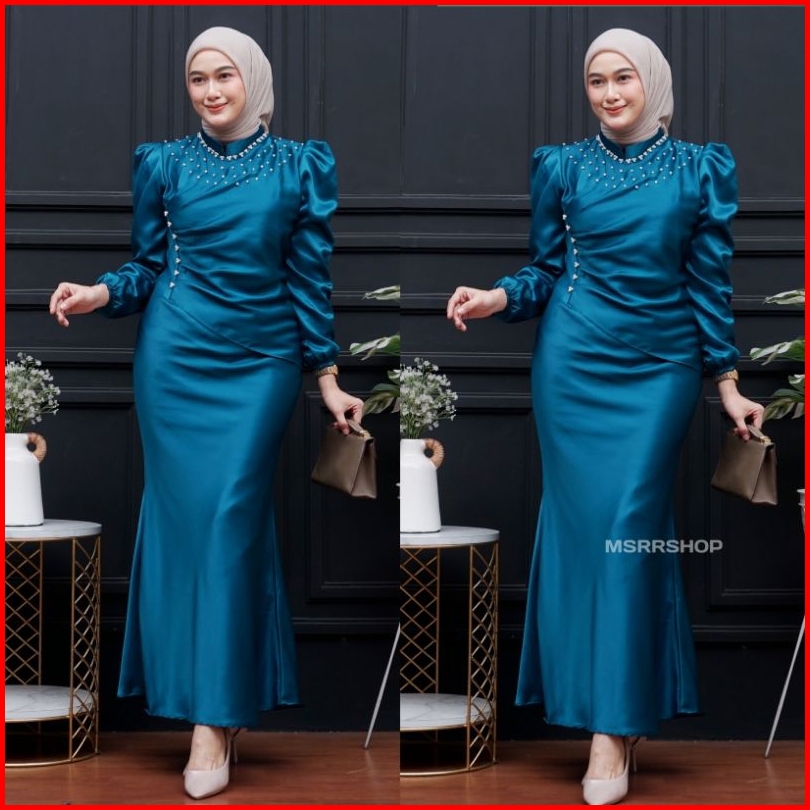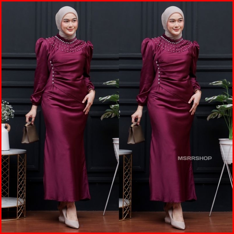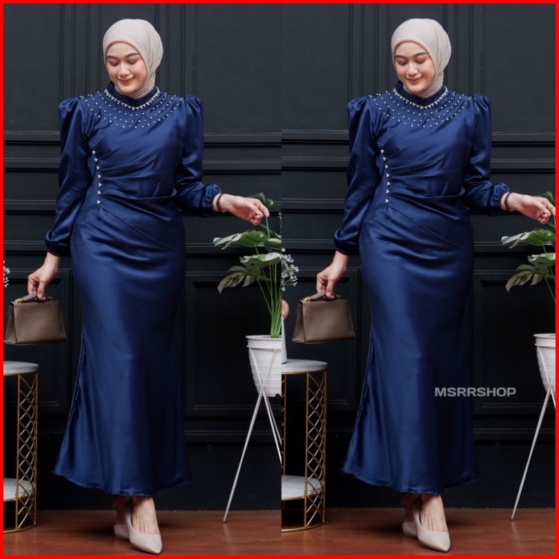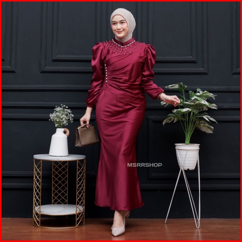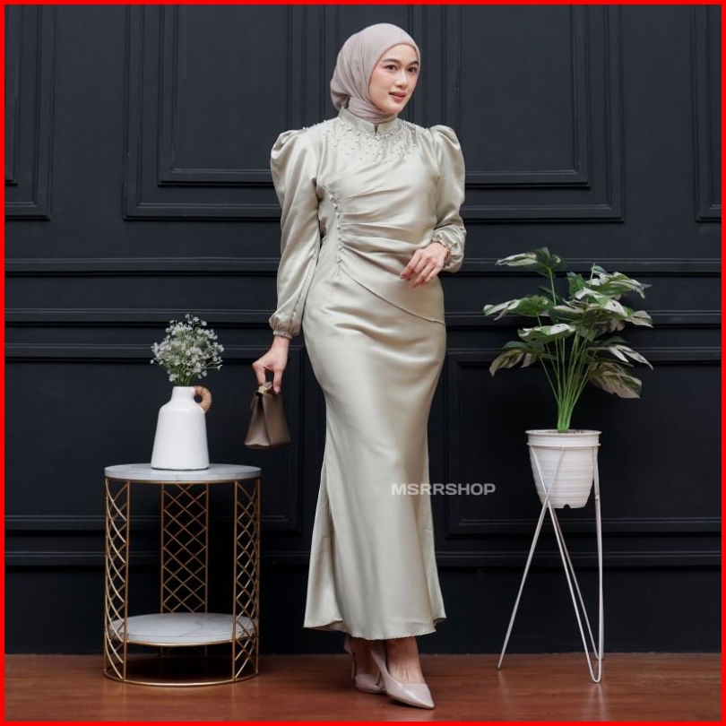 Vina Dress Satin Silk Premium Wanita Kondangan Muslim Body Fit Viral Mermaid 2025