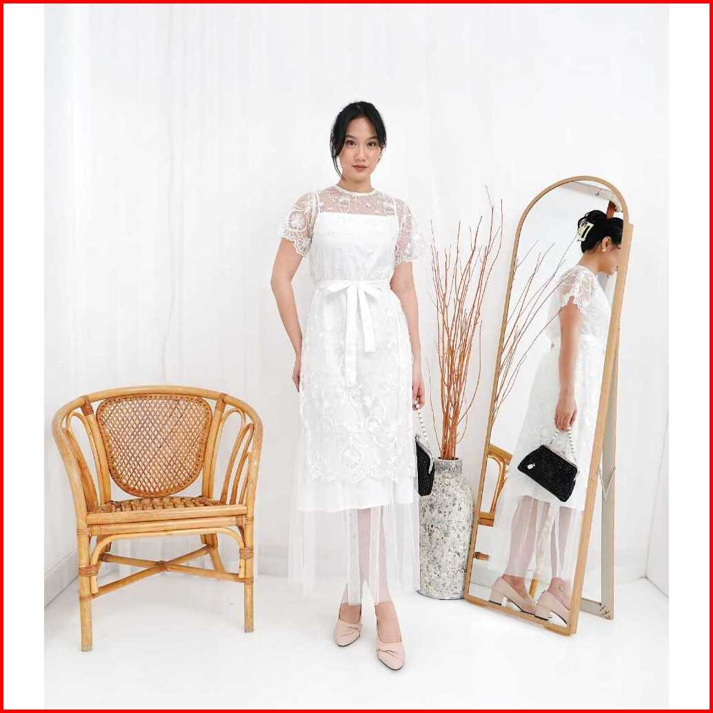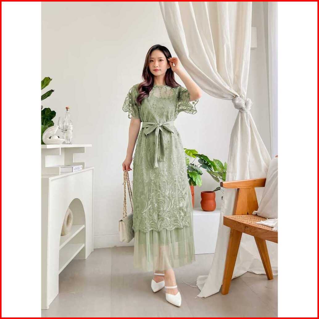 Realpic Dress Fransisca 2in1 Fashion Pakaian Wanita 3 Ukuran M L Dan Xl Inner Tile Polos Lapis Velvet Dan Outer Brukat G