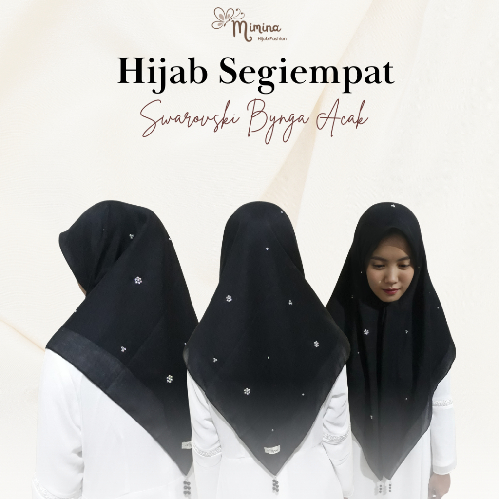 Mimina - Hijab Voal Premium Bunga Swarovski Paris Naura 110x110cm Tidak Menerawang Nyaman Dipakai