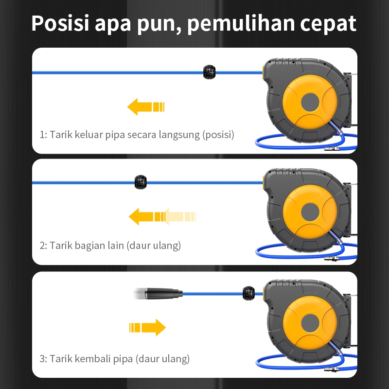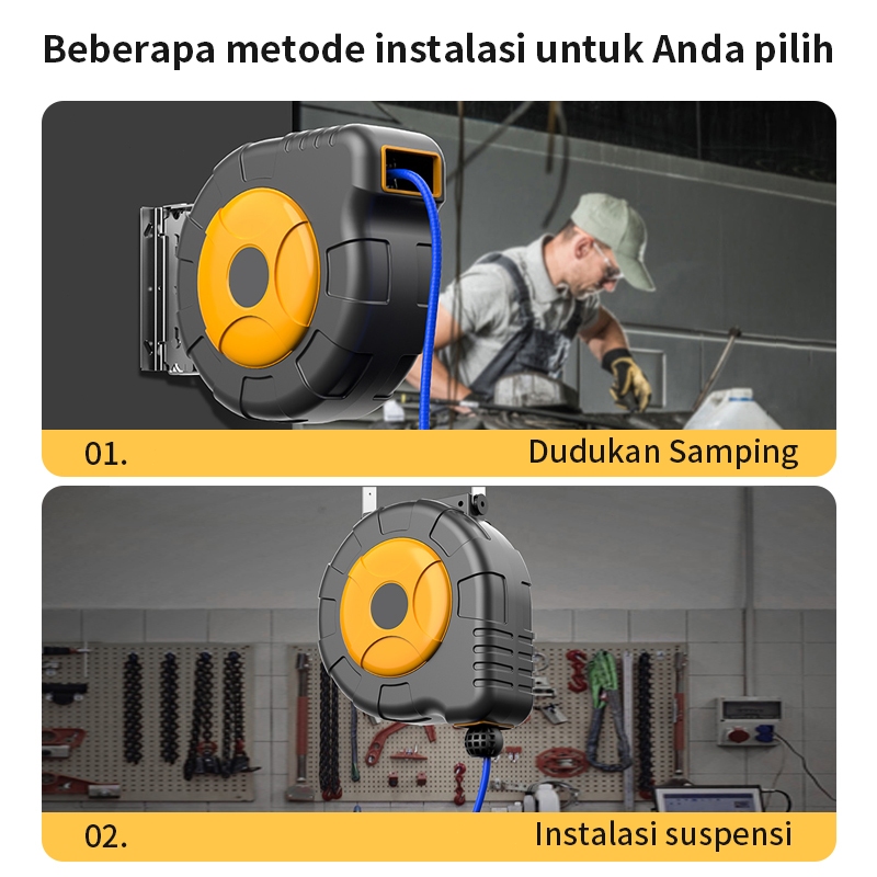 Automatic Air Hose Reel 25M/Selang Air hose reel selang angin gulung selang Kompressor Krisbow ROL Cocok untuk tempat cu