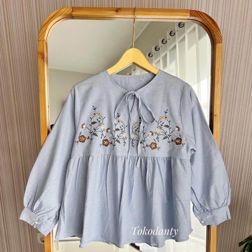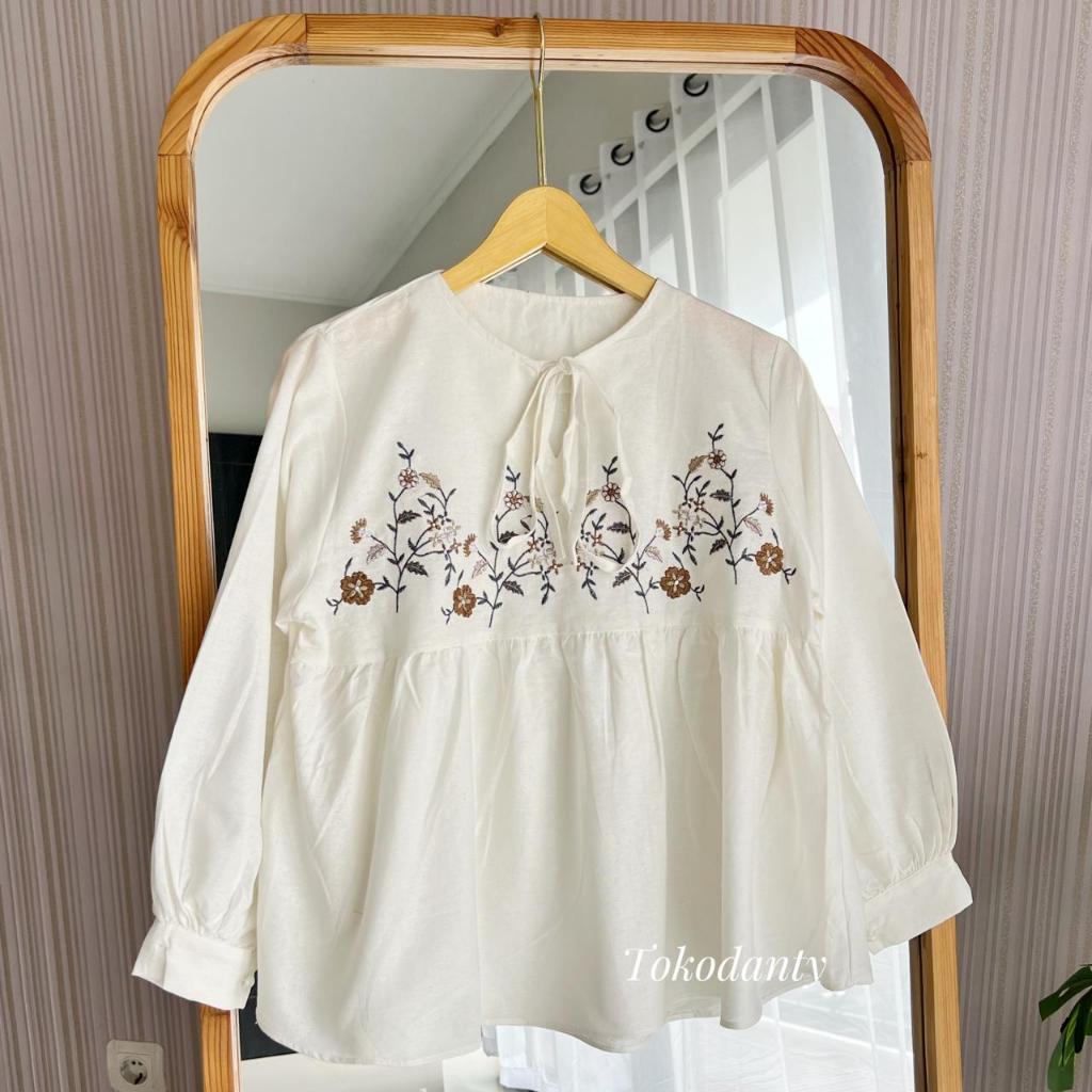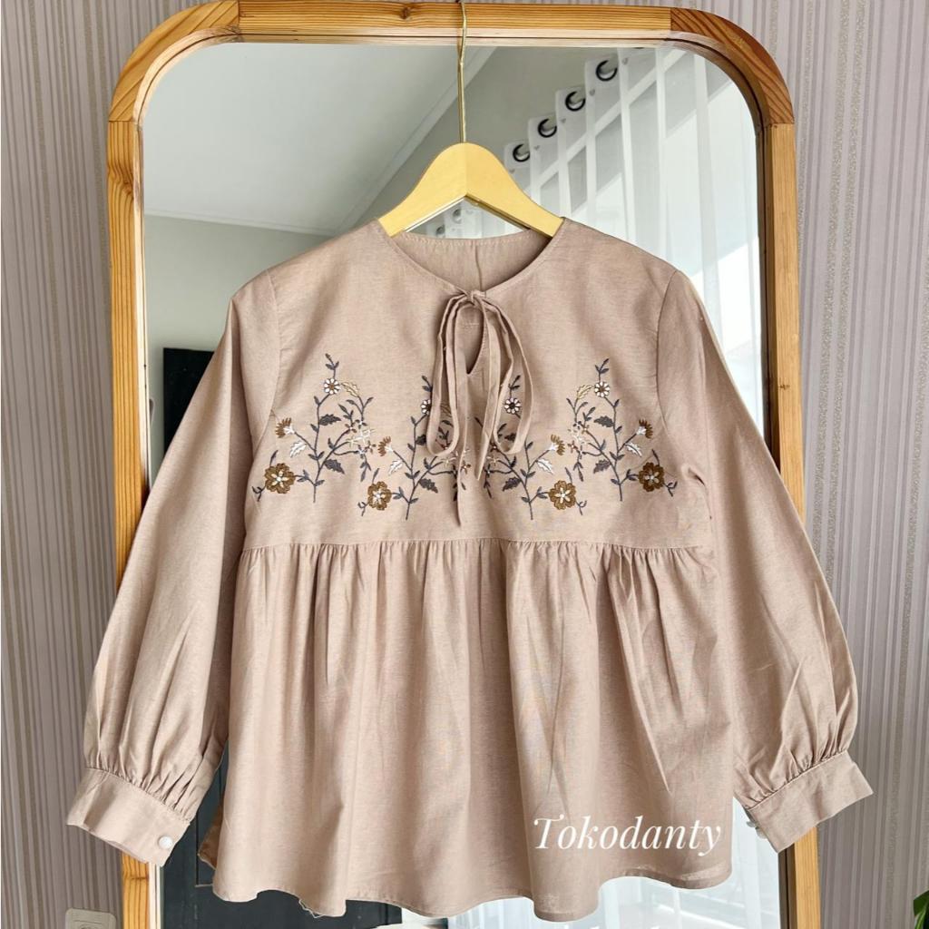 Atasan Bordir Wanita lengan panjang katun linen | Size XL L M S | Atasan Wanita Best Seller LD 110 Dst | Zefira by tokod