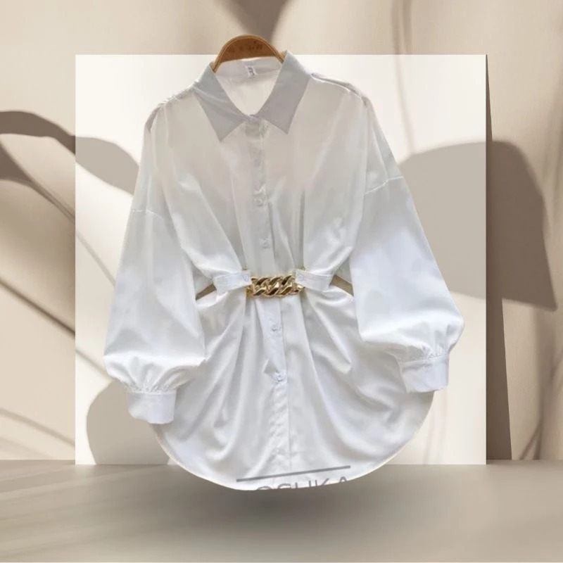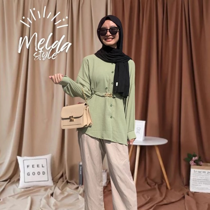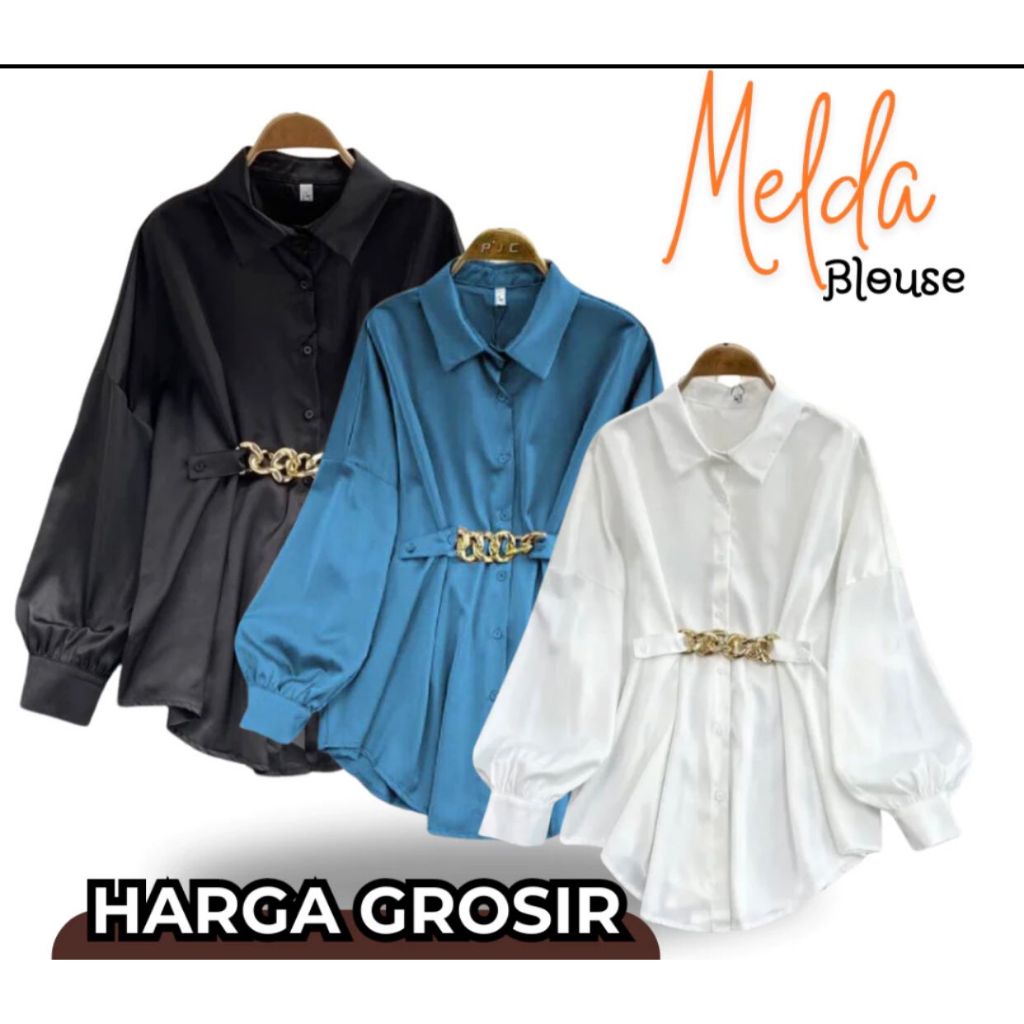 TERLARIS!!! Kemeja Wanita melda Polos premium Rantai Korean Style / kemeja atasan viral