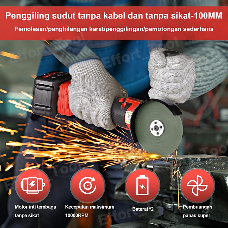 Effort Gerinda Tangan Baterai cordless 10000RPM Mesin gerinda listrik 21V Makita baterai Brushless Angle Grinder Cocok u