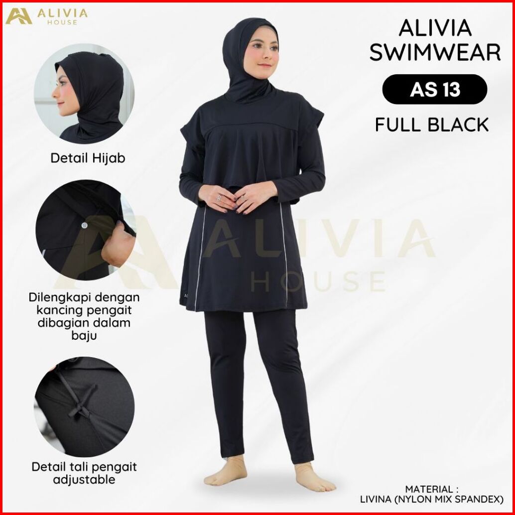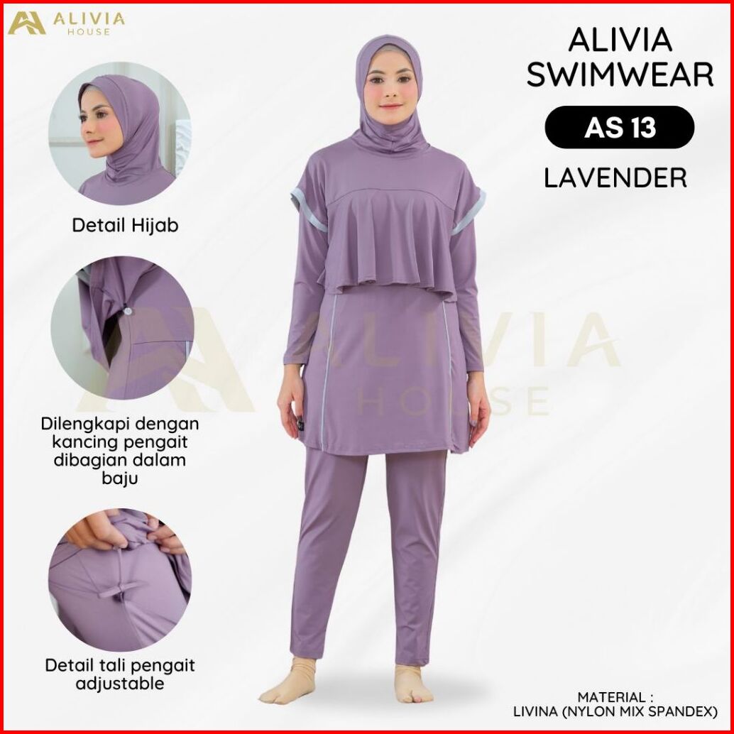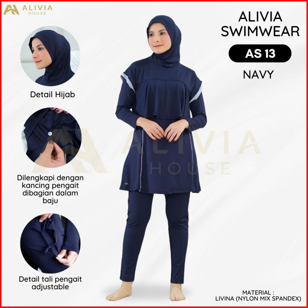 Alivia Swimwear As 13 - Baju Renang Muslimah Syari Poly Spandex Dewasa Wanita Muslim Perempuan Remaja Swimwear Hijab Ali