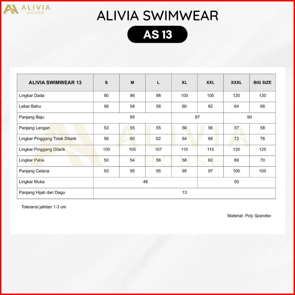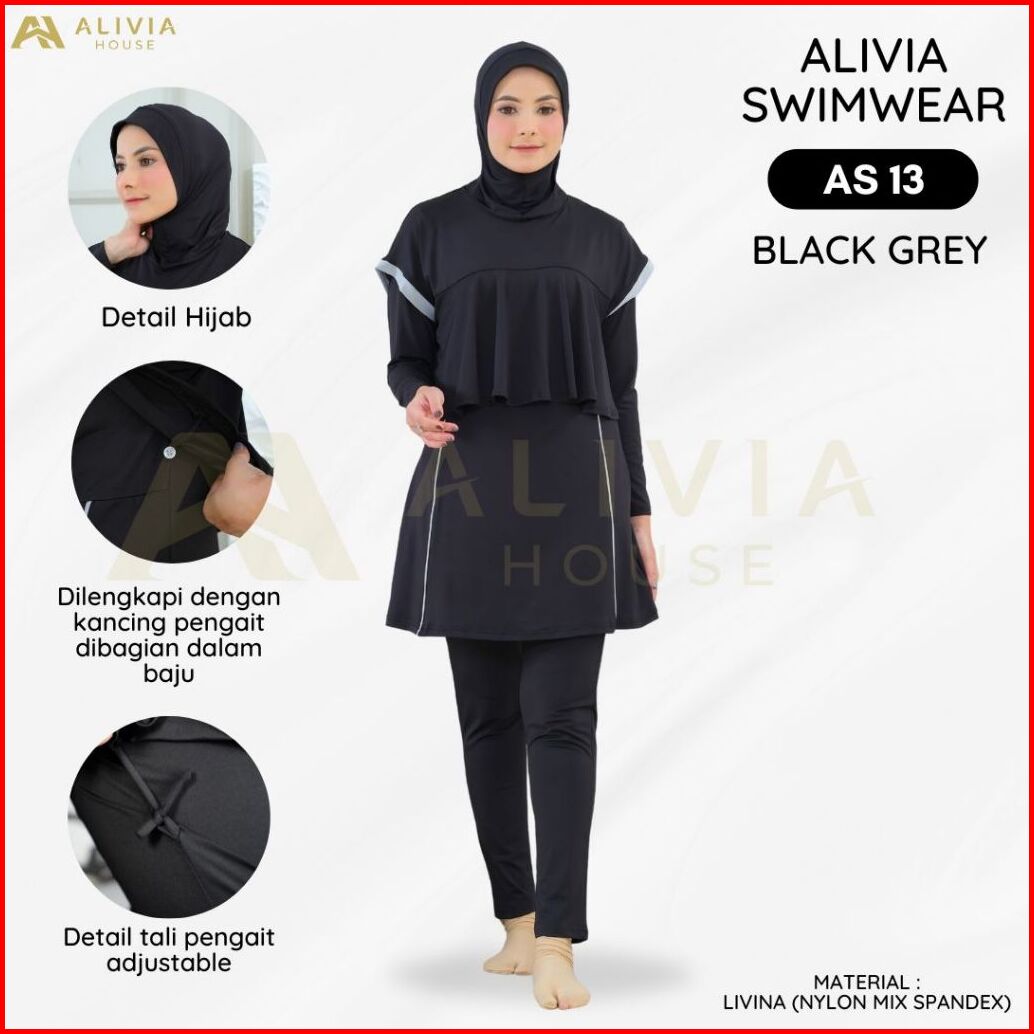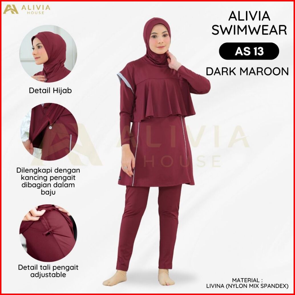 Alivia Swimwear As 13 - Baju Renang Muslimah Syari Poly Spandex Dewasa Wanita Muslim Perempuan Remaja Swimwear Hijab Ali
