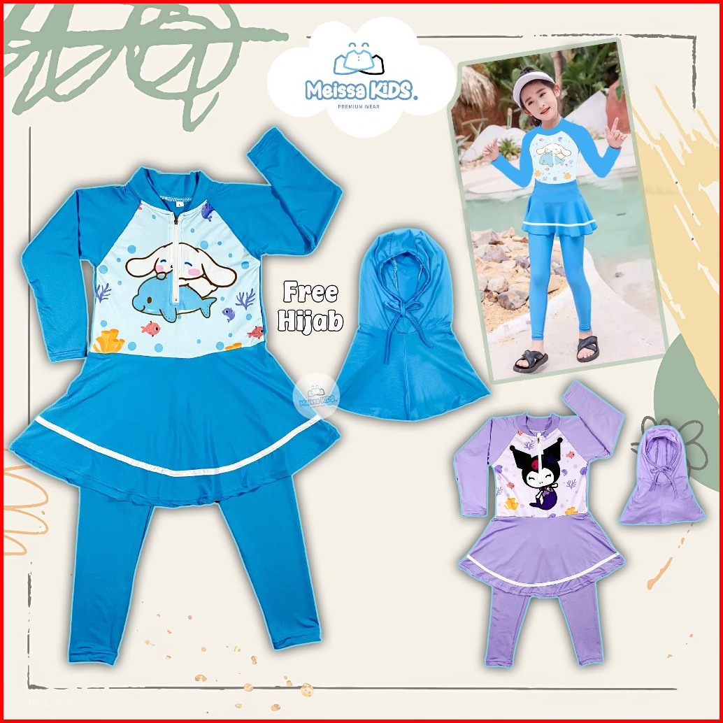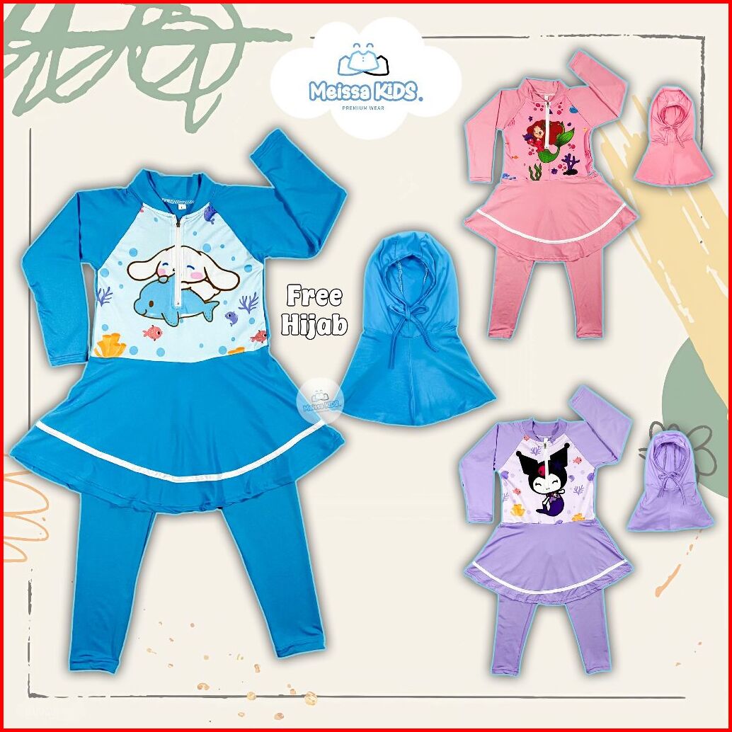 Meissa Baju Renang Anak Panjang Karakter Rok Inner Spandek Premium Free Hijab