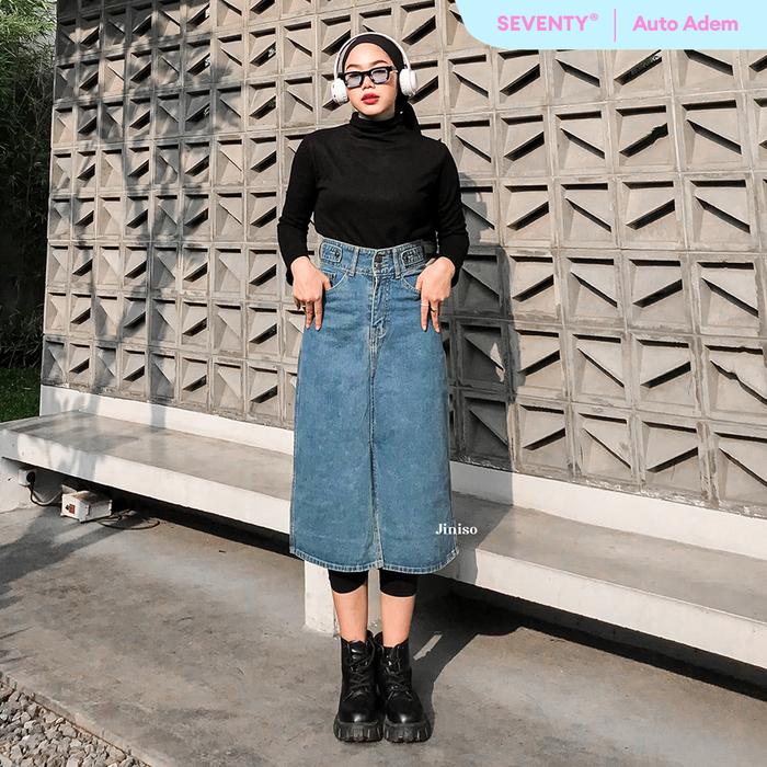 JINISO SEVENTY - 981 Highwaist Rok Jeans Wanita Warna Ocean Blue