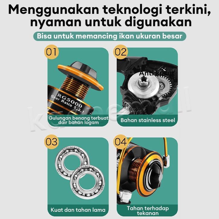 reel pancing metal kuat spinning HE500-7000, Max Drag 80kg, Power Handle, Untuk Laut & Air Tawar Termurah