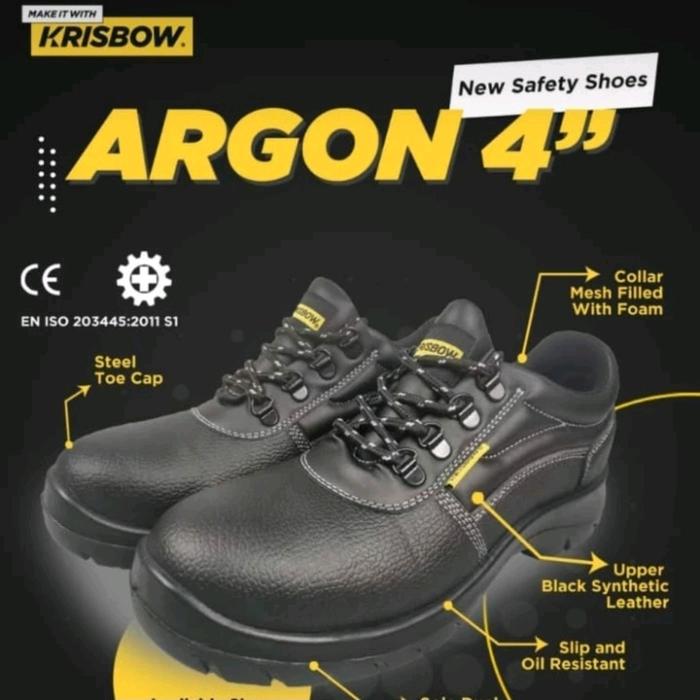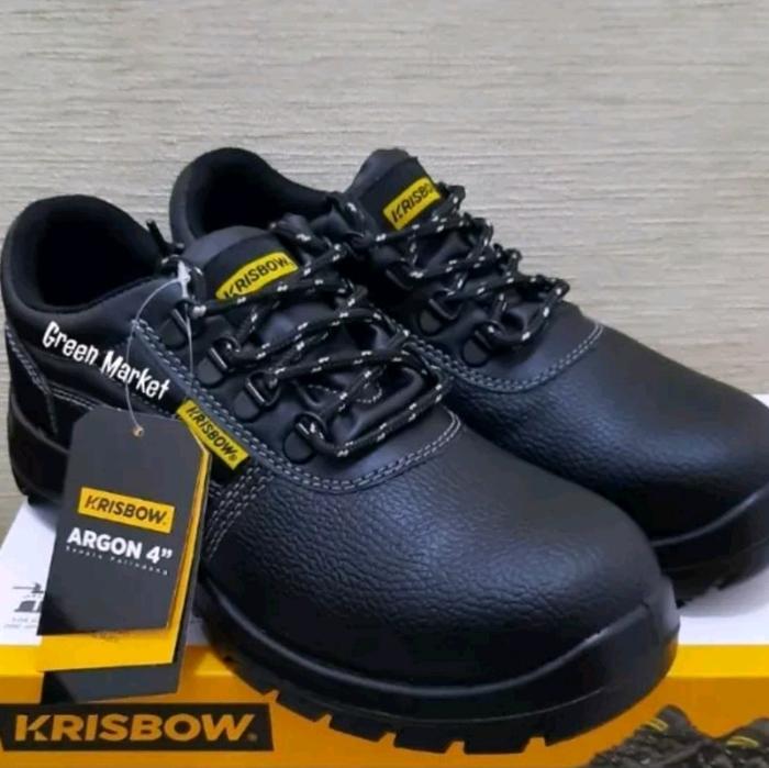 Sepatu Safety Pria Sepatu Pengaman Kerja Krisbow Argon 4 Inch Pergelangan Kaki Hitam - Besi