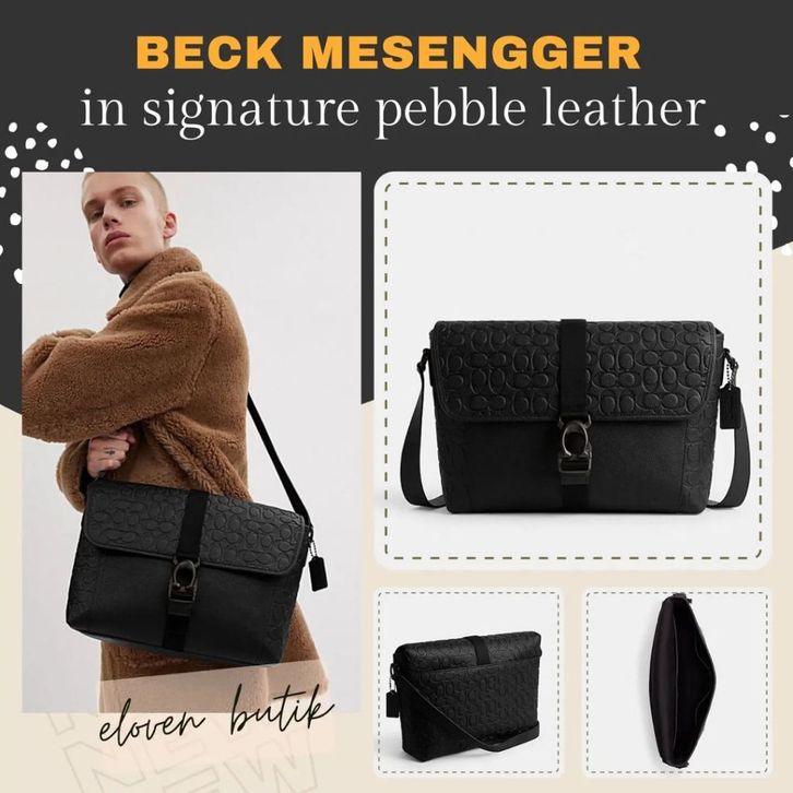 Tas Pria c0ach Beck Messenger in Signature Pebble Leather