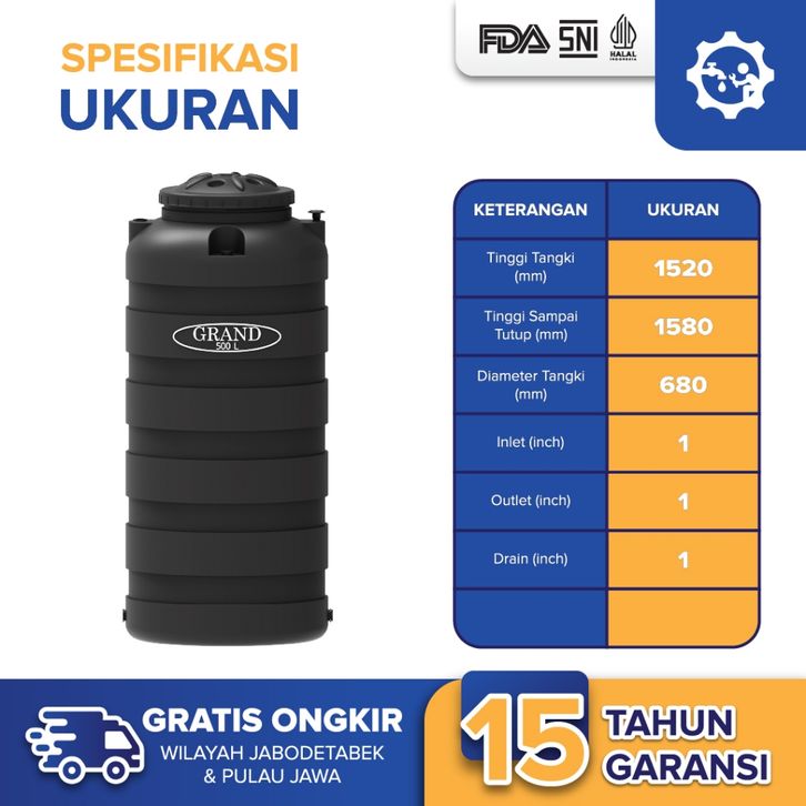 TERBARU Tangki Tandon Toren Air Grand Slim 500 L Higienis & Free Ongkir ubebr